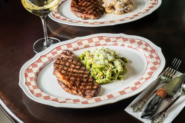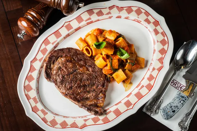 被這家隱藏於PMQ的意式扒房驚艷到!星期六中午來和朋友吃birthday lunch,全店只供應一套$388 +10% 套餐,卻完美融合手工意粉自由+乾式熟成牛扒+儀式感甜品,慶祝生日/紀念日性價比之選💫 記得提前預約⏰🔪先選牛排刀牛排刀有8款,客人要在入座前門口的展示櫃先選好牛排刀,儀式感滿滿☺️🥗沙津吃肉類和大量澱粉質前先吃點新鮮沙律菜,有助腸道消化吧🤣🍽️自選意粉形狀 5選1寬麵Pappardelle/ 義大利細麵Spaghetti/ 貝殼麵Conchiglie/ 中型通心粉Mezzi Rigatoni/ 蝸牛麵Lumache🍽️自選意粉醬汁 6選1松露醬Truffle/ 四重芝士醬Quattro Formaggi/ 羅曼斯可醬(紅椒) Romesco/ 煙花女醬(番茄、黑橄欖、鯷魚) Puttanesca/ 番茄醬 Pomodoro/ 辣味阿爾巴塔醬Spicy Arrabbiata🍝手工意粉任食上述的自選款我們揀了松露貝殼麵和四重芝士寬麵,醬汁非常香濃,意粉非常掛汁。店員還會不時捧着一大盤新鮮出爐的意粉問客人要不要加添,口味是廚師隨機烹煮的。我們也加了4次,那個青醬和不知是蕃茄還是紅椒醬也是十分惹味🤤🥩USDA Prime級熟成牛扒2選1西冷Striploin肉香濃郁帶油邊;肉眼Ribeye油花均勻,推薦5成熟😍🤎手工提拉米蘇由店員拿着一大盤分配給每個客人,然後再拿原件朱古力灑上朱古力碎,咖啡酒味平衡不死甜😊🎂生日專屬儀式感店員齊唱生日歌送上插著蠟燭的Tiramisu,這個附送的Tiramisu跟跟餐的那個有點不同,因為是冷藏過,所以香味更加明顯😋…查看更多