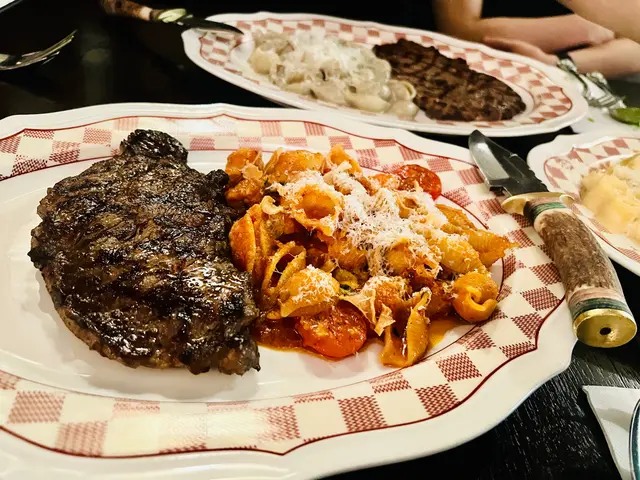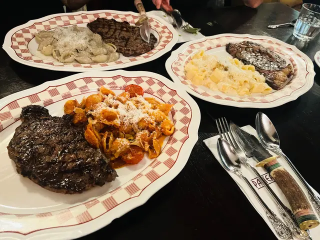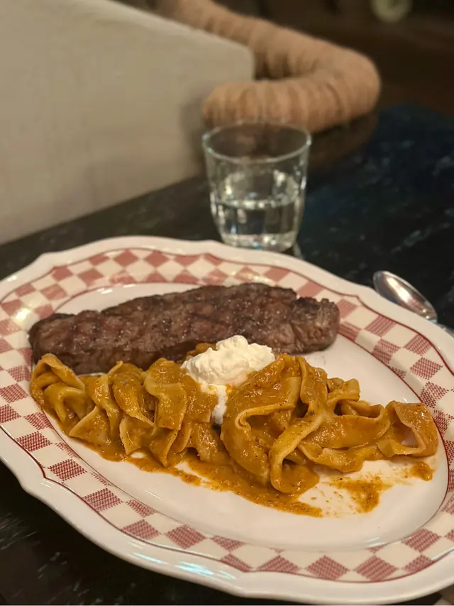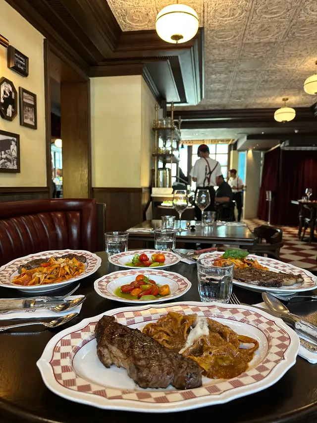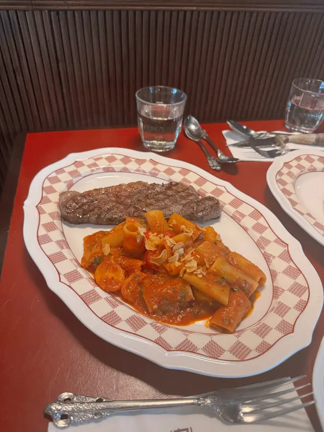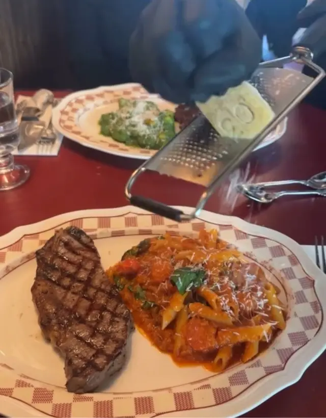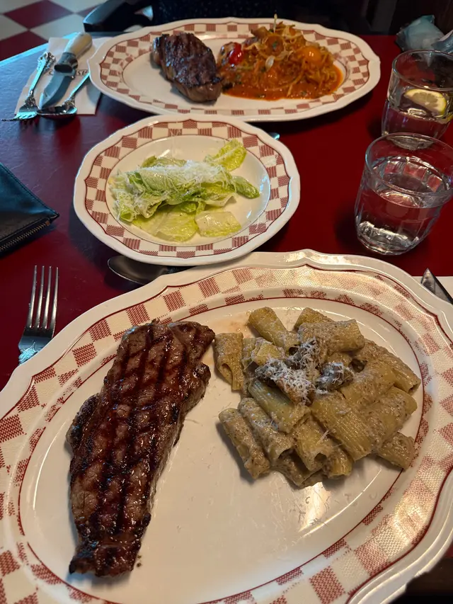 被這家隱藏於PMQ的意式扒房驚艷到!星期六中午來和朋友吃birthday lunch,全店只供應一套$388 +10% 套餐,卻完美融合手工意粉自由+乾式熟成牛扒+儀式感甜品,慶祝生日/紀念日性價比之選💫 記得提前預約⏰🔪先選牛排刀牛排刀有8款,客人要在入座前門口的展示櫃先選好牛排刀,儀式感滿滿☺️🥗沙津吃肉類和大量澱粉質前先吃點新鮮沙律菜,有助腸道消化吧🤣🍽️自選意粉形狀 5選1寬麵Pappardelle/ 義大利細麵Spaghetti/ 貝殼麵Conchiglie/ 中型通心粉Mezzi Rigatoni/ 蝸牛麵Lumache🍽️自選意粉醬汁 6選1松露醬Truffle/ 四重芝士醬Quattro Formaggi/ 羅曼斯可醬(紅椒) Romesco/ 煙花女醬(番茄、黑橄欖、鯷魚) Puttanesca/ 番茄醬 Pomodoro/ 辣味阿爾巴塔醬Spicy Arrabbiata🍝手工意粉任食上述的自選款我們揀了松露貝殼麵和四重芝士寬麵,醬汁非常香濃,意粉非常掛汁。店員還會不時捧着一大盤新鮮出爐的意粉問客人要不要加添,口味是廚師隨機烹煮的。我們也加了4次,那個青醬和不知是蕃茄還是紅椒醬也是十分惹味🤤🥩USDA Prime級熟成牛扒2選1西冷Striploin肉香濃郁帶油邊;肉眼Ribeye油花均勻,推薦5成熟😍🤎手工提拉米蘇由店員拿着一大盤分配給每個客人,然後再拿原件朱古力灑上朱古力碎,咖啡酒味平衡不死甜😊🎂生日專屬儀式感店員齊唱生日歌送上插著蠟燭的Tiramisu,這個附送的Tiramisu跟跟餐的那個有點不同,因為是冷藏過,所以香味更加明顯😋…查看更多