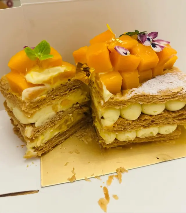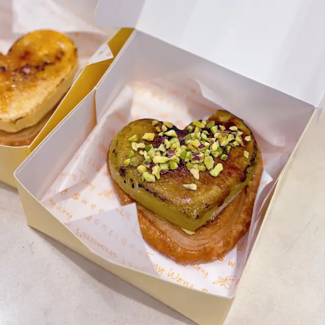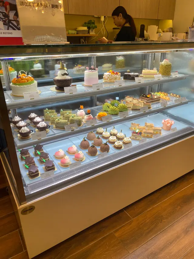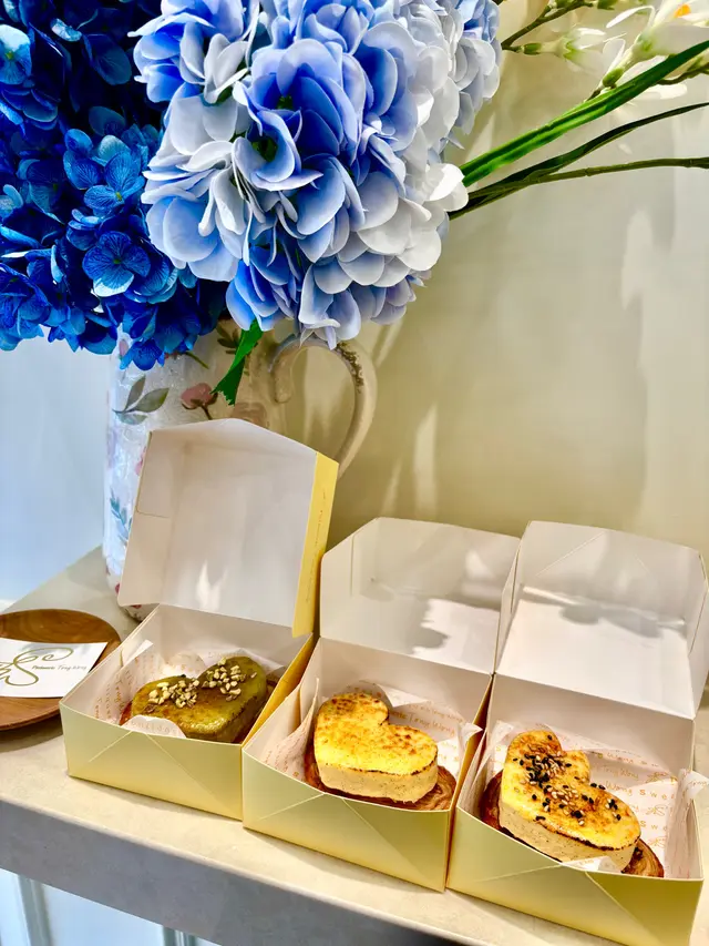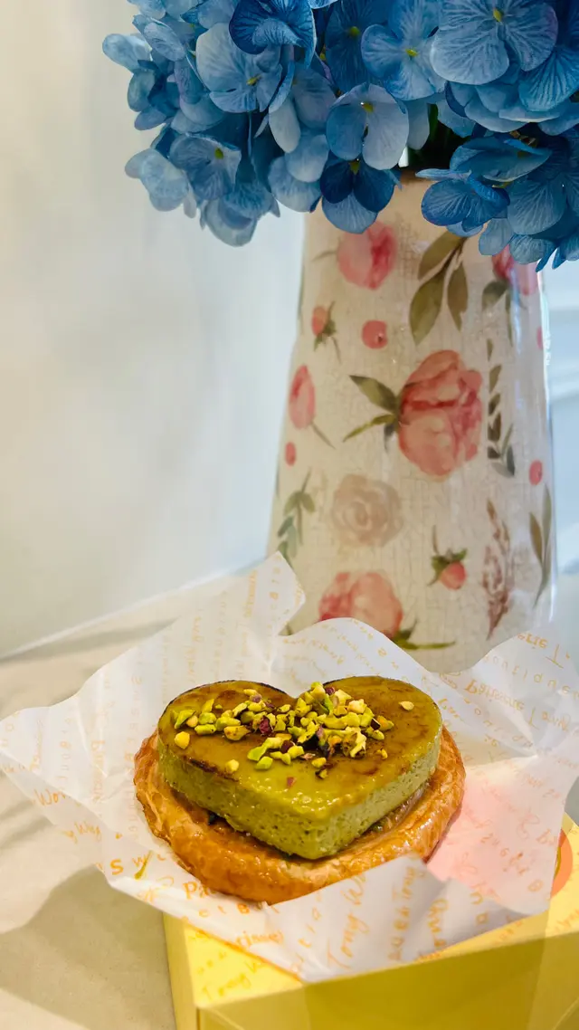 🟩 Pistachio Cheesecake• Visual Appeal: The layered structure and muted green tones suggest a refined pistachio base, possibly paired with a creamy cheese layer. The sphere garnish elevate it to patisserie-level presentation.• Flavor Profile: Pistachio brings a naturally nutty, slightly sweet depth. If the cheesecake is well-balanced, it should avoid being overly rich, with the pistachio cutting through the creaminess. A touch of salt or citrus zest would enhance complexity.• Texture: Ideally, it should be velvety with a slight crumble from the crust. If there’s a mousse or whipped layer, that adds a luxurious lightness.🌸 Lychee Cake• Visual Appeal: The glossy pink dome is striking—almost jewel-like. The white accent on top adds contrast and elegance.• Flavor Profile: Lychee is delicate and floral, so the cake should be subtly sweet with aromatic notes. If paired with a sponge or mousse, it should feel airy and refreshing.• Balance: Lychee can be cloying if overdone, but this looks restrained. A hint of acidity (maybe raspberry or yuzu?) would round it out beautifully.☕️ Coffee• Presentation: The cup design is charming and adds a personal touch—“Have a nice day” sets a cozy tone.• Pairing: Coffee’s bitterness is the perfect counterpoint to the sweet, creamy cakes. If it’s a medium roast, it would complement the pistachio’s nuttiness and cleanse the palate after the lychee’s floral sweetness.…查看更多