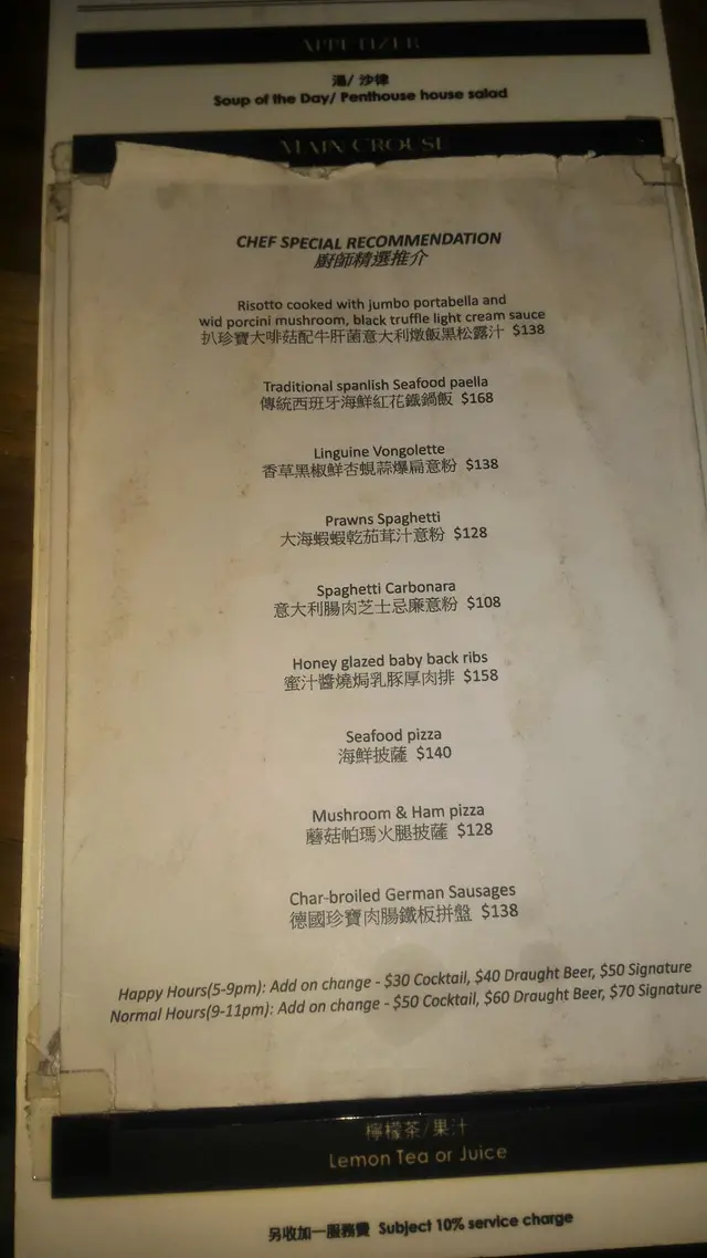 Wait for 60 minutes for the meals, yet, NOTHING coming. So me and my friends were curious when can we enjoy our food instead beers only. However, the waiters have double checked it and told us the kitchen did not receive any food orders. And the waiter told us they did not put those food in the order list as the food have out of stocks but without any notice!WHAT a brilliant excuse, without any notices and asking? Plus we still waiting for the food after the next 60 minutes. AND NO ONE CARES ABOUT US. Such a terrible experience and still asked us for the minimum charge? ARE YOU BLOODY SERIOUS? SUCH AN AWFUL EXPERIENCE AND I WILL NOT COMING BACK AGAIN FOR SURE!…查看更多