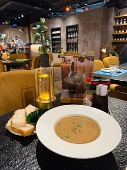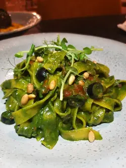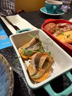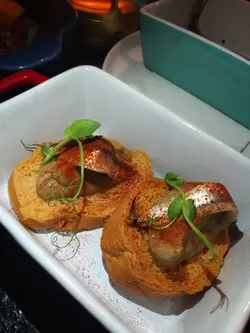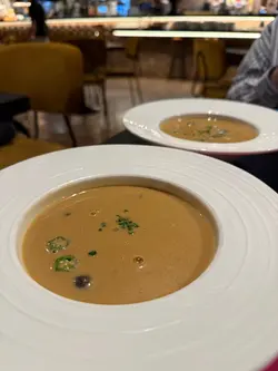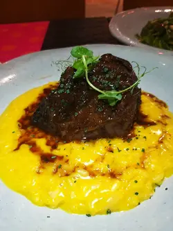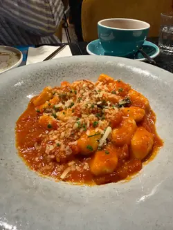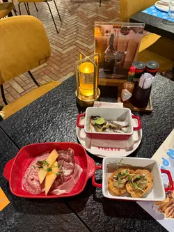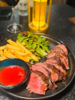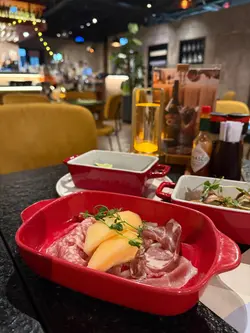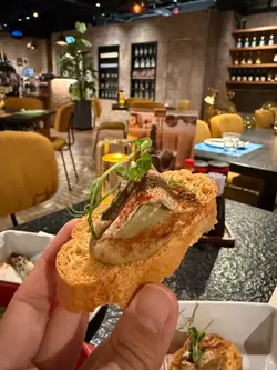 This restaurant is located at Tai Po Arts Centre, which is the former Tai Po Government Secondary School. In 2019, the place is converted to dedicate to community’s needs and aim to nurture talents in Hong Kong. Arriving here, there is an eye-catching lightbox outside, with an interesting pig sculpture leading customers in.The space should be a function room before, with high ceiling, and no columns. Quite a big place, there are many tables with the kitchen on one side. The brick walls and large windows create a nice industrial vibe, which is relaxing and comfortable. On a weekday evening, it is not busy and most of the customers are from the neighbourhood.We ordered Set Dinner for Two ($438), which starts with soup. The soup on the day was Lobster Bisque, rich and flavourful. While there are not a lot of lobster meat you can find, the chef has added some kombu to add a bit of texture and extra layer of umami to the soup. Quite nice.Next comes three appetizers. The first is Bruschetta with Eggplant Puree. On a crunchy toasted baguette slice are eggplant puree, together with anchovies and a bit of paprika. The eggplant is delicious with a nice smokiness, while the anchovies provide the savoury taste and the paprika a touch of mild spiciness.The second is Roasted Capelin in Mediterranean Style. The sardines are roasted and seasoned with capers, parsley, taggiasche olives, lime, and olive oil. The fish has a bit of fishy note which can be an issue for some people, but adding a bit of lime juice helps to tone it down.The final one is Italian Cold Cut Platter, with 24 months Parma ham, salami, and Coppa ham, paired with fresh melon. The ham are decent in taste, but I was surprised to see them serving the melon to pair, demonstrating the restaurant’s attention to keep to the traditional style.While there are some choices for main course, we picked Gnocchi all’ Amatriciana, and Grilled Angus Hanger with French Fries ($90 extra). The gnocchi has a nice soft chewy bite, with the sauce having rich flavours, combining acidity and sweetness from tomatoes, fragrance from basil, and savoury from guanciale.The steak is large in portion, grilled to a nice medium level, with a crisp surface, moist and juicy inside. The meat is also not too fatty. On the side there are plenty of French fries, also nicely done, with a bit of salad too to help balance the palate. While it is not necessary, there is also gravy provided for those who want a bit of sauce to go with the steak.The set also includes coffee or tea. Service is decent, however there is not that much interaction with the staff. The bill on the night is $581. A good price to value and should be a good spot if you are living in the neighbourhood, but probably not worth coming all the way if you are living on HK Island to try it out.…查看更多