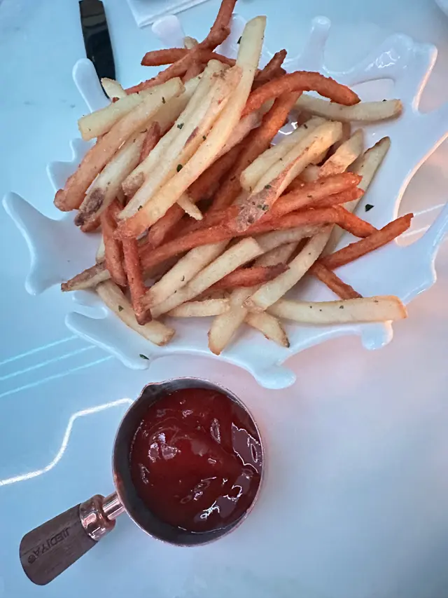 Walking into Phenomenon is like entering into a different world - the world of TRON to be exact. From the chairs, tables, bar counter, all the chandeliers, to the selections of cutleries, glasses, plants…everything is so well-thought, so perfectly matched. Haven’t mention the view looking into the habour and mountains, facing the breathtaking sight of sunset!Their food are also very delicious, crafted by their experienced chefs. We tried their dinner set, and started off with fresh baked mini croissants shipped directly from France with herbs butter. Then came the pan fried scallop, very fresh. The lobster bisque came after and it was good. It was creamy with a strong taste of shellfish and chunks of lobster meat. For mains, we had codfish with miso glaze and handmade carbonara pasta. The cod was so tender, it melted in our mouths. The pasta was perfectly cooked, and the carbonara sauce was using all the authentic ingredients. For dessert, we tried their most famous tiramisu, the chef tailored the recipe for over 30 times in order to get the right balance between the sweetness, bitterness and liquor. We love it! To say the least, this restaurant has great service, amazing food, breathtaking view with beautiful interior designs! This is a must try and we’ll definitely come back over and over!…查看更多