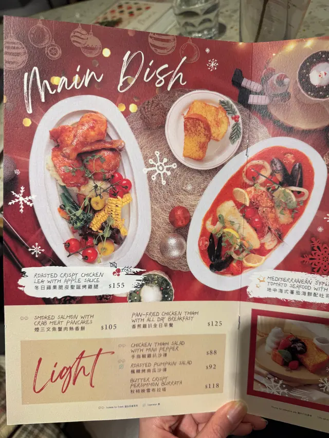 #中環地膽 去左PHI食聖誕餐, 今次嘅menu真係好有節日氣氛, 每款食物都做到色香味俱全! 朮其飲品同甜品真係好igable ! 🍗 冬日蘋果脆皮聖誕烤雞腿雞皮烤到金黃香脆,肉質超乎想像咁嫩滑,一啲都唔乾柴,每啖都充滿肉汁, 蘋果香氣滿滿!🍝 辣蕃茄茄蟹肉扁意粉意粉煮得剛剛好,軟硬適中又有咬口。醬汁微辣嘅新鮮蕃茄醬好醒胃,蟹肉份量足而且鮮甜唔腥。🎃 楓糖烤南瓜沙律南瓜烤到邊緣微焦,入口香甜粉糯。楓糖漿薄薄一層更添香甜。沙律菜新鮮爽脆,多重口感好豐富,清爽又開胃。🥞 焦糖紅寶石玉桂梳乎厘一上枱就聞倒滿滿玉桂同焦糖香氣。梳乎厘質地輕盈,入口即化。焦糖醬的甜中和蘋果十分夾。面頭嘅紅寶石果乾酸中帶甜, 超好吃。❤️ 聖誕老人朱古力泡泡💚 抹茶聖誕圈圈兩杯都好啱打卡, 朱古力泡泡綿密,味道香濃純正,抹茶清香同回甘。大滿足! 📍 @phi.coffee.pancakePHI Coffee & Pancake中環士丹利街19號卡佛大廈2樓1號舖#PHICoffeePancake #中環美食 #聖誕大餐 …查看更多