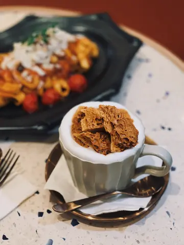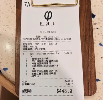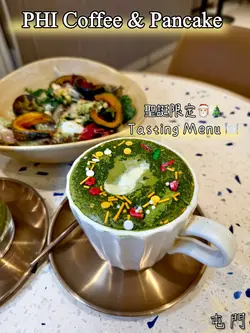 今日收工同老公去睇左場戲,散場個肚打鼓,見到對面既 「PHI Coffee & Pancake」出左個「Mini Christmas Dining for Two」,$338就有齊前菜、Share dish、Main dish同飲品,計落又幾抵食喎!二話不說就入去撐枱腳啦 🥰。.頭盤先黎個「楓糖烤南瓜沙律」開開胃 🥗。入面有新鮮沙律菜、烤南瓜、燕麥片同水牛芝士等,最正係可以自己倒楓糖漿,甜度自己控制,淋上去之後成個沙律即刻昇華左,清新得黎又有d甜甜地既滋味,好開胃 🍯。.Share dish我地揀左「冬日蘋果脆皮聖誕烤雞腿」🍗。隻雞脾皮脆肉嫩,切開仲有肉汁!下面鋪滿左綿密既薯蓉,配菜都好豐富,有烤南瓜、烤粟米同聖女茄,每一啖都好滿足,真係好有聖誕大餐既氣氛 🎄。.主食就叫左「辣蕃茄蟹肉扁意粉」🍝。佢地用既係粗身扁意粉,好掛汁!表面鋪滿晒蟹肉,真係無手軟,每一啖意粉都沾滿左香辣既蕃茄醬同鮮甜蟹肉,惹味到停吾到口 🦀🌶️。.套餐包2杯飲品,老公揀左杯「焦糖脆脆鮮奶咖啡」,香濃咖啡配上脆脆口感既焦糖,口感好豐富。我另一杯係「香芋泥米麻薯鮮奶茶」,芋泥好綿密,加上煙韌既麻薯,口感一流,芋頭控必飲 💜。.食完正餐個胃仲有位,黎得PHI無理由吾食佢地既招牌梳乎厘架嘛?所以我地另外單點左個聖誕限定既「焦糖蘋果玉桂梳乎厘」($138) 🥞!三層日式梳乎厘厚鬆餅震騰騰咁上枱,空氣感十足。配埋幾塊焦糖化呈金褐色既蘋果肉同金寶蘋果泥,酸酸甜甜好開胃。上面仲有淡綠色既cream同乾蔓越莓點綴,加埋個迷你白朱古力聖誕老人 🎅,擺盤精緻到吾捨得食,一定要相機食先 📸!…查看更多