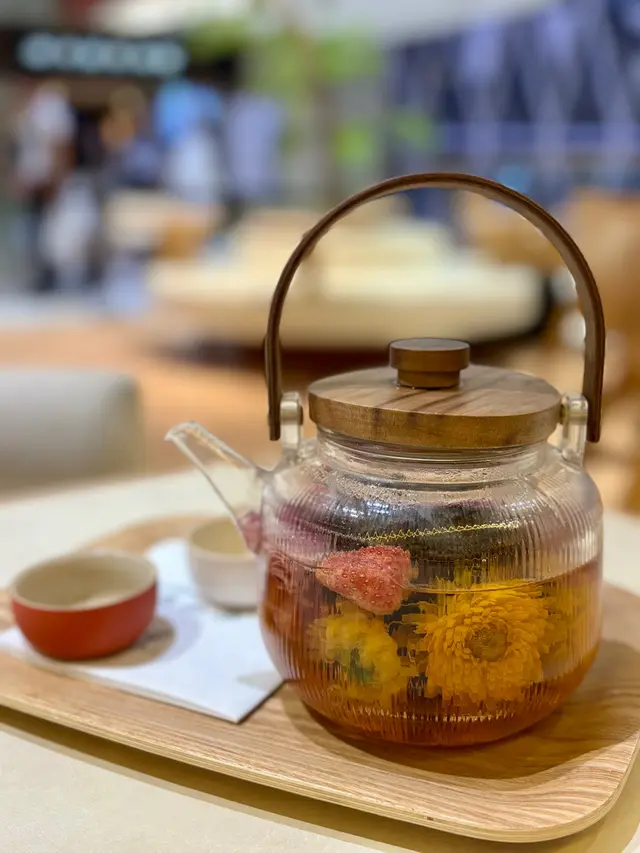 一大壺花茶仲有士多啤梨乾果🍓做調味,所以味道酸酸甜甜帶點點花香,仲可以要店員再加水繼續飲,開心!