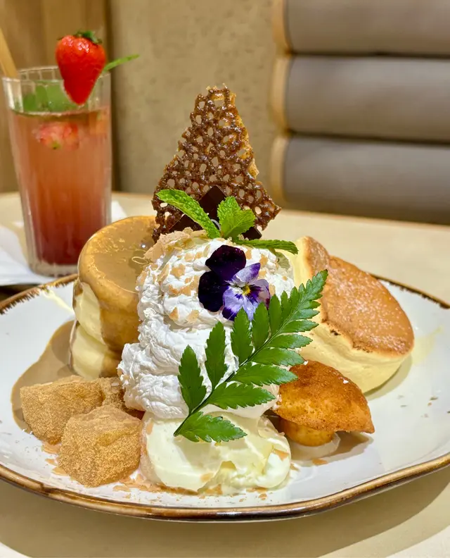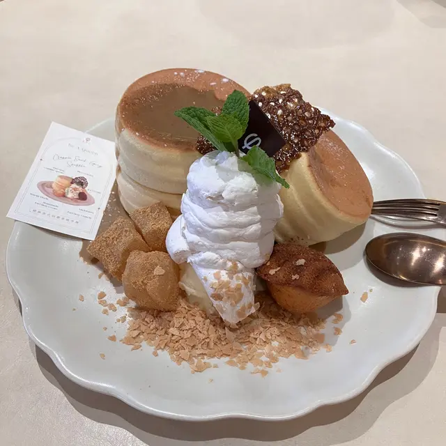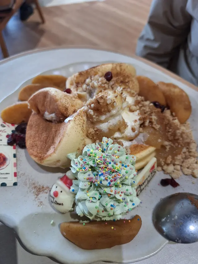 最後,當然要點個招牌梳夫厘先叫黎過《PHI Coffee & Pancake》。就到聖誕🎄,當然試下冬季限定的蘋果玉桂梳乎厘。嘩!份量超多!一碟有三大個招牌鬆軟梳夫厘,配料有一堆玉桂蘋果蓉,好多舊用焦糖煮過的蘋果,仲有一球雲呢拿雪糕同埋忌廉,再加入了紅莓乾形成紅寶石梳夫厘。