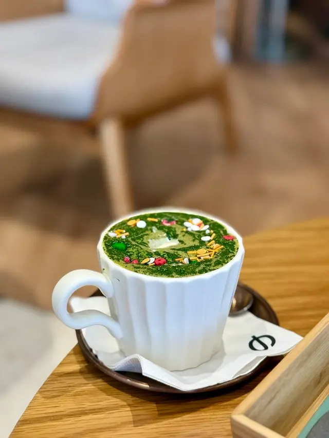 聖誕限定嘅飲品,梗係率先品嚐一下啦!抹茶熊嘅熊妹就當然幫襯抹茶產品。其實係一杯抹茶拿鐵。表面加入了七彩繽紛的波波糖做點綴,形成一個聖誕圈圈嘅效果而命名。