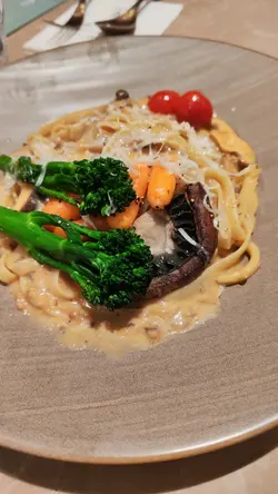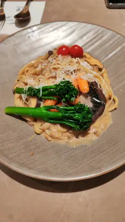 餐飲可選任何一款意式咖啡,冷熱同價,嚟得呢類咖啡店點可以唔嘆杯靚咖啡吖,小弟就鍾情鮮奶咖啡,而老婆就揀杯咖啡味無咁重嘅朱古力咖啡,兩杯嘅拉花都好唔錯,平滑而花紋細緻。前者沖泡手勢好,晌無攪嘅情況下,每口口感、味道都好一致,順滑醇香;後者濃郁嘅朱古力,帶少少咖啡香,啱晒老婆喜好。我哋入座後嘅早段時間,全座近滿,但只得一位後生女侍應,佢真喺堅,傳菜、沖咖啡、收銀一腳踢,忙到不可開交,但依然有禮且面帶笑容,咁嘅服務真喺讚得一讚!之後多一位後生仔返工,自然運作更流暢,佢都喺好有禮貌,所以,服務方面俾夠佢哋滿分