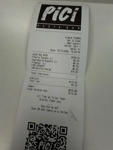 ✨𝓟𝓲𝓬𝓲Wonderful Food and Atmosphere for a Decent Lunch𝓛𝓾𝓷𝓬𝓱 𝓢𝓮𝓽 $158𝓹𝓹💎𝓢𝓽𝓪𝓻𝓽𝓮𝓻 - 𝕍𝕚𝕥𝕖𝕝𝕝𝕠 𝕋𝕠𝕟𝕟𝕒𝕥𝕠One of my fav starter from Pici! The tuna mayo matches so well with the sliced veal! Love it🧡💎𝓜𝓪𝓲𝓷 - 𝕋𝕒𝕘𝕝𝕚𝕒𝕥𝕖𝕝𝕝𝕖 𝕄𝕦𝕤𝕤𝕖𝕝𝕤Not many mussels, but the focus is the tagliatelle! Pici's al dente homemade pasta is an absolute pleasure to have 🩷 Big portion too!!💎𝓓𝓮𝓼𝓼𝓮𝓻𝓽 - 𝕋𝕚𝕣𝕒𝕞𝕚𝕤𝕦Can't rmb how many times I'm saying Pici has the best Tiramisu in town! As a tiramisu lover, I always go to different restros for their tiramisu, but by far, Pici has been the top of my best and no restro can beat them‼ The mascarpone is very smooth and soft, it matches just right with the lady finger soaked in espresso💗 The expresso is just right 😍 not too strong but adequate to bring out the sweetness of the mascarpone! Totally obsessed with it❤️🩷Friendly and passionate staff which made the restro so vibrant and lively☺️✅Will definitely visit again☺️…查看更多