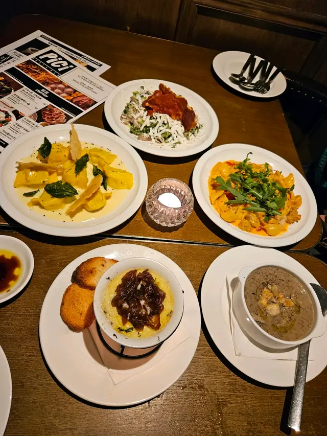 Pici 幫襯過幾次,真係無令人失望。自家製意粉好好食、自家製餐前飽都好好食。幫我哋落單嘅Michael 都好細心,留意到我大肚,提返我哋落嘅甜品Tiramisu 有酒精💯我哋叫咗Set For 2 加飲品。小食叫咗蕃茄醬青口、炸魷魚圈。因為青口嘅蕃茄汁太好食,於是要多咗一袋飽嚟點青口。💗魷魚圈唔係常見嘅大魷魚圈,係細粒嘅,夠脆唔油膩,係有少少太咸,扣咗少少分。意粉叫咗一個辣肉腸貓耳朵同一個8月限定嘅車厘茄大蝦意大利雲吞。呢到嘅意大利雲吞係我so far 食過最好食嘅,入面嘅餡好Juicy、又有口感。最後到甜品,又叫咗8月限定嘅焦糖香蕉Tiramisu🥲呢個有少少失望,原來唔係平時嘅Tiramisu 加焦糖香蕉,而家一杯全新嘅甜品,香蕉Tiramisu。(我太鍾意食原本嘅Tiramisu)甜品總體黎講香蕉味好出,有少少似食緊香蕉雪糕咁,好滑。同埋佢唔係用咖啡酒,係用冧酒,味道都真係幾強勁😬但講到尾,都係原味最好食🤣…查看更多