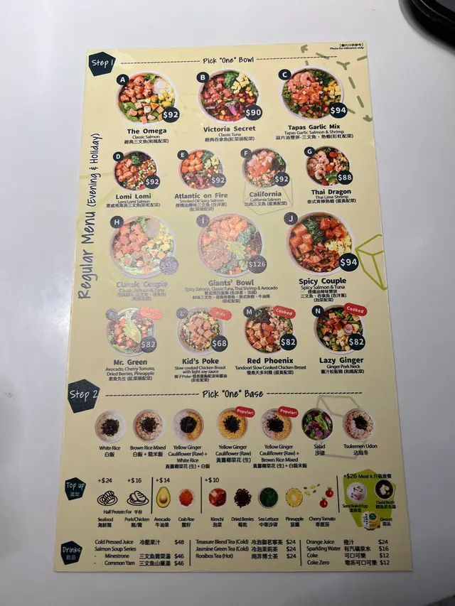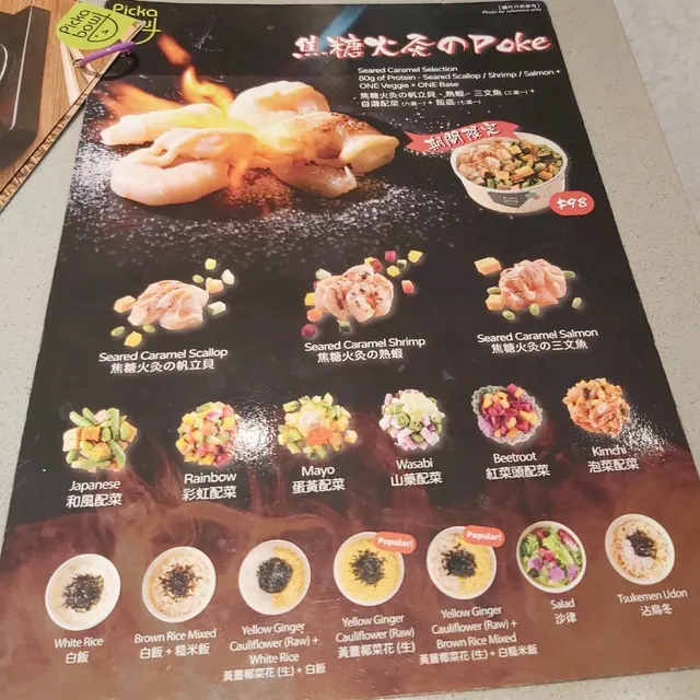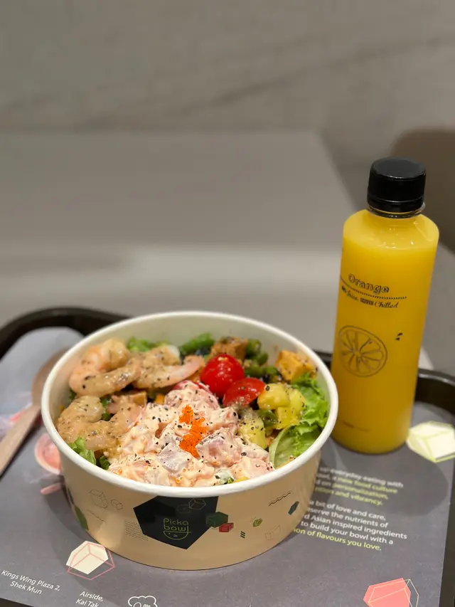 踏入Pickabowl,感覺到一陣清爽的氣息。首先試嘅係泰式熱蝦配蒜辣八爪魚,啖啖蝦仔彈牙得嚟唔會過火,蒜蓉八爪魚有種蒜香撲鼻之餘,辣得嚟又唔會辣到飛起,正!彩虹組合嘅配菜又鮮又脆,沾埋中華沙律醬,每一啖都咁開心。香草芥末大蝦同加州三文魚就又係另一番風味,特別係山藥組合,小小籐籐嘅口感搭上芥末醬,叫人詫異又回味無窮。沙律特別地味道不單一,賣相又靚,攝哂攝哂!Red Dragon 嘅鮮果汁更加係今次嘅驚喜之一,新鮮嘅火龍果同蘋果混合,入口清新自然,完全無添加,好適合配合餐。整體黎講,呢間餐廳真係做到又健康又美味,仲有得DIY自己嘅Poke Bowl,簡直係要食得健康嘅朋友嘅福音!飲品餐點一樣新鮮,服務員嘅態度都好友善,環境舒適,十分推薦嚟試吓!🥑🍤🍚查看更多