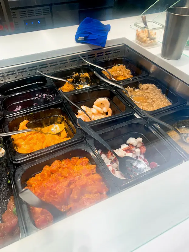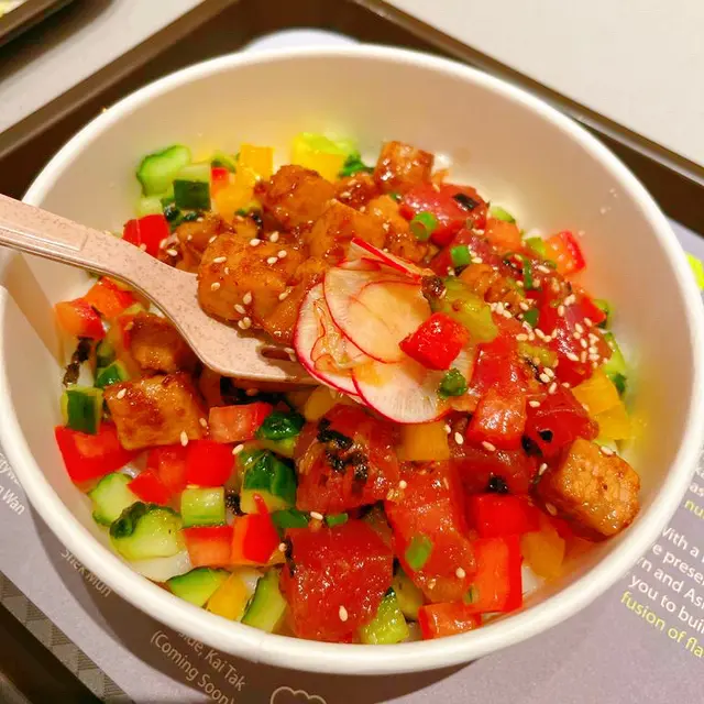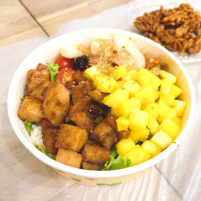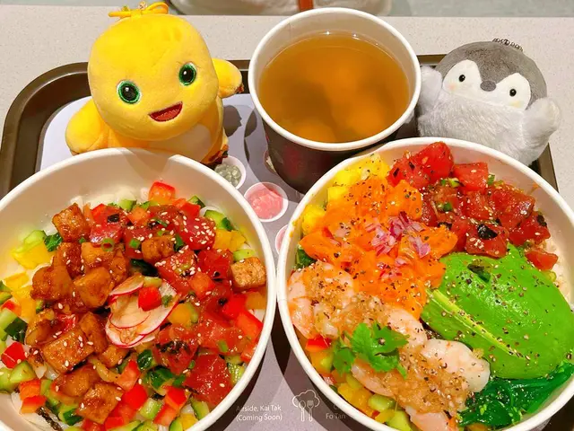 今天吃什麼好呢?夏威夷菜?有什麼🤔吃呀?刺身碗!香港人最愛的三文魚跟吞拿魚!而且可以搭配沙律🥗菜跟蛋黃醬就像身處日本🇯🇵跟美國🇺🇸的夏威夷一樣,fusion得很小店由長沙灣吃到現在,品質很有保證環境十分舒適,有cafe之感出品(點了一生一熟)👍🍣🍝1 x D.I.Y.自選+1沾烏冬🍣+1加州三文魚(半份)🍣+1經典三文魚(半份)🍣+1經典吞拿魚(半份)+1彩虹組合$120.00🍣這是我吃過刺身魚份量最多的一家!三文魚肥美,吞拿魚鮮而不腥,特別喜歡加州三文魚配蛋黃醬,極creamy!入口相當鮮味,完全無筋不配飯反而配冷烏冬,口感煙韌有勁,這冷吃法別有一番風味彩虹🌈組合汁底較鹹香但不油膩,內有番茄🍅,青瓜🥒,三色椒🫑,除了帶來比較清新的味道外,他們切得特別細碎,因而較不會搶去刺身魚的味道跟口感👍🐖🐓🍤🍚1 x D.I.Y.自選🍚+ 1 白飯+糙米飯🍤+1泰式青檸熟蝦(半份)🐓+1慢煮天多利雞(半份)🐓+1 薑汁松板豬(半份)+1蛋黃組合$120.00刻意點了熟食組合 質素也不錯泰式青檸熟蝦帶酸,而且十分彈牙天多利雞是印式雞塊,澆上帶香料跟希臘🇬🇷乳酪🧀️的醬料,口味濃郁松板豬帶油香但不肥膩,味道帶甜,而且爽脆,以速食來說這質素非常難得蛋黃組合菠蘿🍍,青瓜🥒,蟹籽蛋黃醬實在太正了,超creamy!水份豐富的菠蘿跟青瓜解膩非常!飯底選了白飯跟糙米就相對失色,配日式醬油會比較好吧整體而言非常好吃,健康也不貴,值得再吃查看更多