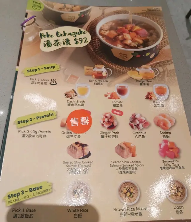 喺D2 place 食過pickabowl 宜家石門京瑞廣場都有分店啦 💡唔想苦惱食咩可以由14款推介配搭中選擇或者跟個人喜好自由配搭DIY 價錢由$68-$96 Step 1 揀2️⃣款蛋白質Step 2 揀1️⃣款蔬菜Step 3 揀1️⃣款主食🥗第1碗· 加洲三文魚🐟香草芥末熟蝦🦐· 和風配菜烤南瓜🎃玉子燒 🥚炸豆腐 四季豆 毛豆 🫛自家製醬油 · 白飯🍚三文魚新鮮 大隻蝦醬料醃得好食多種和風調味料令食慾大增 飯底用上珍珠米🥗第2碗· 慢煮天多利雞🐓經典吞拿魚🐟· 蛋黃配菜 菠蘿🍍青瓜 🥒蟹子 蛋黃醬· 白飯糙米飯 天多利印式香料汁一啲都唔辣慢煮雞胸啖啖肉大量新鮮菠蘿粒青瓜粒中華海帶沙律 口感清爽混搭埋糙米更飽肚健康以下幾款仲照顧埋素食者 小朋友 同 怕生冷人士需要🥗Mr Green 全蔬菜適合vegan 🐔Kid’s poke 慢煮雞胸加淡醬油🐓Red Phoenix 同🐷Lazy Ginger 熟肉類查看更多
