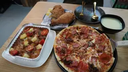 見谷友介紹過呢間新開的Pizza e Pollo,地點在屯門西鐵站旁,行五分鐘就到十分方便。就快到聖誕要叫到會,先來試試味道如何先,好食就叫呢間啦,不竟佢價錢比連鎖店化算,食物選擇也不少😋叫了個四人套餐外賣自取,落完單在店內等便可,店內亦有堂食的,天氣好仲可以坐室外睇景添呀,可惜今天落雨了。薄餅揀了⭐黃金海岸口味,是菠蘿、火腿、煙肉、粟米、吞拿魚等配上千島醬,個人很喜歡呢種甜甜酸酸口味,餅底烘得鬆脆,仲勁多芝士,好好味😋個餐仲可選兩款焗飯或小食,點左⭐焗白汁海鮮飯 & ⭐炸手指魚,個飯正正常常啦無乜驚喜。炸手指魚外脆內滑唔腥,點下他他醬食好正😋仲有⭐炸雞四件,即炸的又香又脆,比起連鎖店大件好多🤪幾大隻雞髀!另外就係⭐餐湯 & ⭐沙律,是日餐湯係薯仔湯,沙律就附上麻醬,仲貼心地分開上😋如果兩樣都唔啱,可以揀要罐裝汽水的。呢個四人餐好滿意,份量十足味道又好食,決定啦~今年聖誕聚會就叫佢啦😆…查看更多