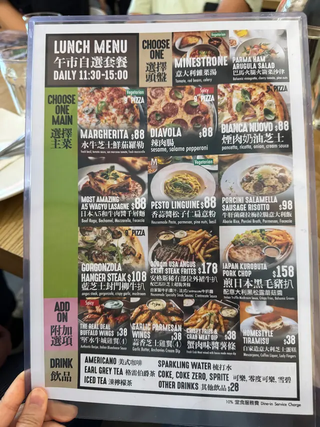 仲記得大半年前同女朋友嚟食,pizza個餅底勁鬆軟,黑松露薯條炸得又香又脆,但今次嚟食真係大失所望!嚟到見到份menu轉曬,有啲舊嘅菜式都冇咗,估緊係咪已經轉咗手。叫咗set menu,四百幾蚊有兩份頭盤同兩個主菜,仲有甜品同野飲,份量好夠但食物質素唔得。1. Buffalo wings炸到好乾,硬到咬得好辛苦2. 煙肉薯條面頭一舊舊啲煙肉直頭硬到咬唔開,啲薯條又係overcooked,炸到好硬🤡3. 個pizza一黎到我地都呆左,個樣好似跌過落地咁,又係焗到好乾好硬,好彩面頭有啲burrata cheese,如果唔係真係食唔到4. 牛扒叫做成餐飯唯一比較好食嘅,可能因為唔係炸嘢,所以冇overcook🙃特登由港島區搭車過嚟試,但應該唔會再有下次了😤…查看更多