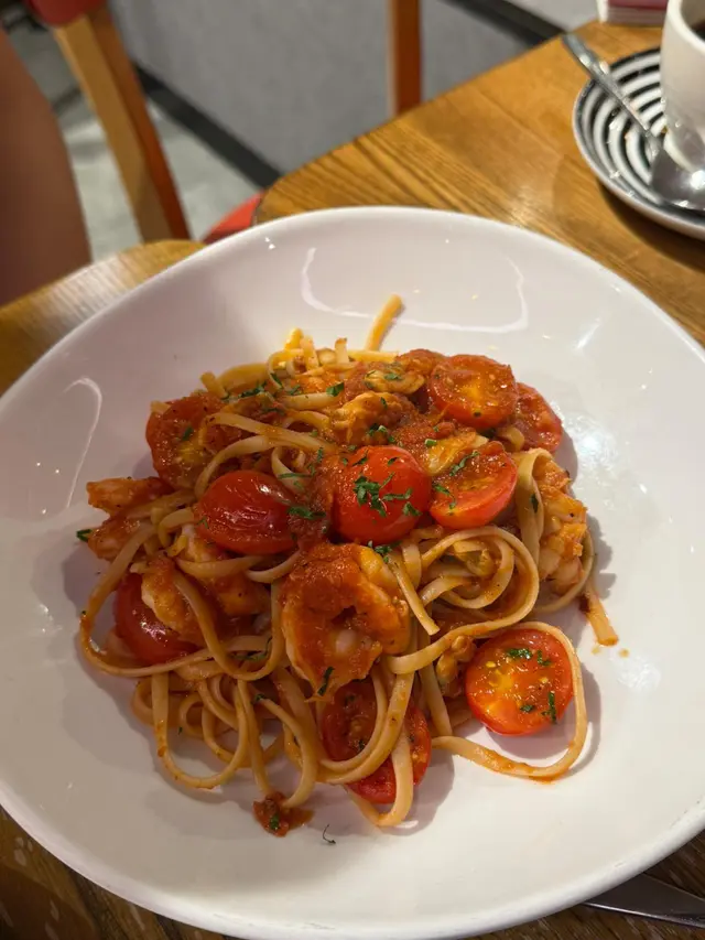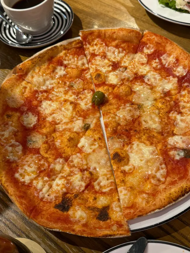 係上水廣場的Pizza Express 食晚飯,Book左8:30半價優惠(+2杯正價飲品) ,點左四重芝士薄餅同海鮮意粉,感覺比想像中好,食物質素有驚喜。餐廳坐得舒服、輕鬆氣氛,適合同朋友或家人聚餐。本身鍾意食芝士,叫左個芝士四重芝士薄餅。薄餅用薄底,烤得香脆,上面有四款芝士(Mozzarella、Gorgonzola、Parmesan 同 Fontal),入口濃香四溢,芝士拉絲效果一流,鹹香中帶點 Gorgonzola 嘅微辣,食落好滿足!雖然芝士味濃,但唔會太膩,份量啱晒兩人分享。海鮮意粉都好好食,意粉煮得彈牙、海鮮有大蝦、青口、魷魚同蜆,全部新鮮好食,配上白酒番茄醬汁,酸甜中帶海鮮鮮味,醬汁濃稠得宜,掛滿每條意粉,好開胃!飲品點了檸檬茶,可食無限refill。晚上8:30,少人,上菜速度快。餐廳乾淨企理,座位安排舒適,枱面同餐具都乾淨。人均約 HKD 150-200,薄餅同意粉嘅食材同質素對得住價錢,喺商場西餐廳黎講,CP值唔錯。…查看更多
