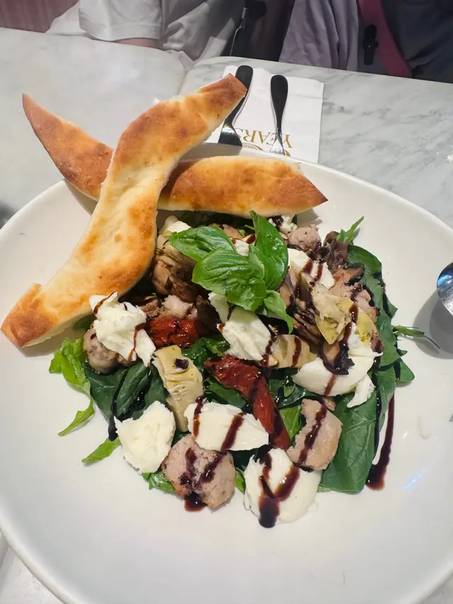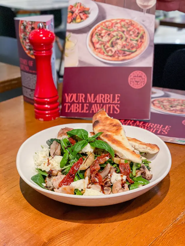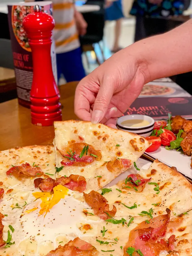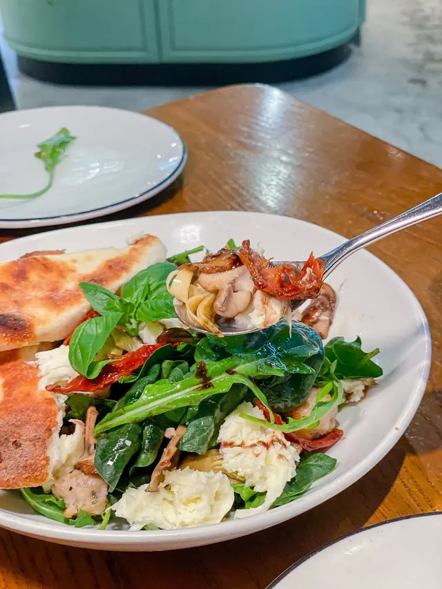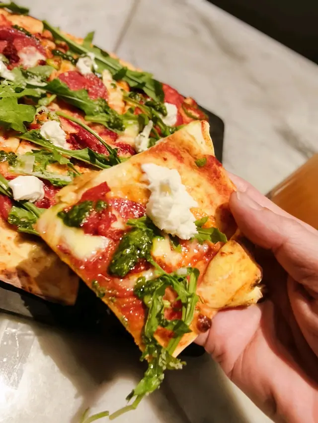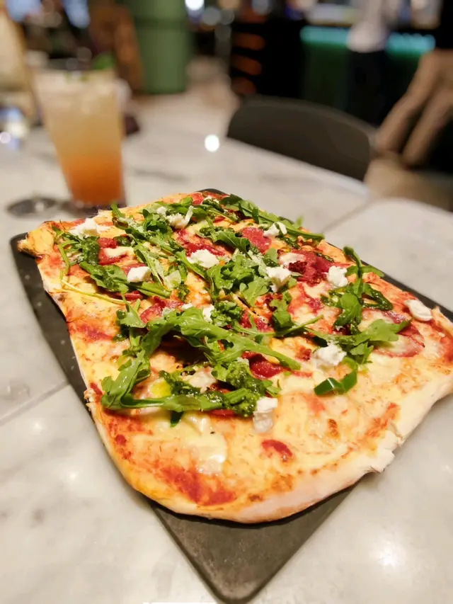 今日到了奧海城pizza express 下午茶🫖。我們二人叫了二人餐,前菜選了肉丸森林沙律🥗,份量都多,有豬肉丸、新鮮馬蘇里拉芝士🧀、菠菜葉、火箭菜、蘑菇、雅枝竹、番茄乾及和蜜糖芥末醬,還配上黑醋醬和焗麵包條。混著黑醋酸酸,很開胃!焗麵包條🥖烤得金黃,很鬆脆!然後主菜叫了卡邦尼薄餅🍕,意式風乾豬面肉、雞蛋、巴馬臣芝士、馬蘇里拉芝士及白汁。意式風乾豬面肉咸香的,雞蛋和芝士攪和在一起絕了!白汁調得特別濃,接著芝士在嘴裡化開,巴馬臣的奶香混著肉香,越嚼越香😋!飲品我們就叫了藍天乳酸特飲,柑橘與乳酸風味和諧融合,清新帶微酸!味道像忌廉溝鮮奶。士多啤梨🍓乳酸特飲更像甜品,士多啤梨與乳酸口味的迷人結合草莓味兒超濃,酸甜中帶點奶呼呼的口感,像在喝草莓奶昔但更清爽😚!二人餐看似只有一個前菜和主菜,但飽肚量真是100%🥰查看更多