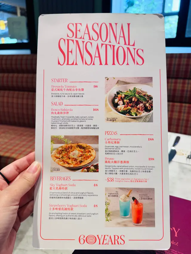 在大角咀奧海城的PizzaExpress,經過見到慶祝PIZZAEXPRESS 60YEARS ,60周年!!我對這裡的「季節性風味」菜單有一個期待,值得的美食之旅,忍不住想要一試。SEASONAL SENSATIONSSTARTERBresaola Tonnato意式風乾牛肉配吞拿魚醬意大利風乾牛肉、吞拿魚醬及酸豆葉前菜展現了意大利的經典風味,風乾牛肉鹹香十足,濃郁的吞拿魚醬,再加上酸豆葉的清新點綴,非常開胃,一起放進口裏,每一口都充滿層次感。PIZZASBruno 風乾火腿洋蔥薄餅披薩餅底薄脆,恰到好處的焦香感,以濃郁意大利藍芝士為底,焦糖洋蔥的甜味與馬蘇里拉芝士的絲滑,完美的對比。搭配上風乾火腿、清新脆口的火箭菜及巴馬臣芝士,口感層次豐富。每一口都感受到火腿的鹹香與洋蔥的甜美,充滿了細膩的風味,交融實在令人陶醉。Sky Yoghurt Soda這款藍天乳酸特飲,柑橘的清新與乳酸的微酸融合得恰到好處,讓人感到一陣清新感,正是夏季的理想選擇。Strawberry Yoghurt Soda士多啤梨乳酸特飲則帶來甜美的享受,士多啤梨與乳酸的結合,讓每一口都如同品嚐夏日的果實,令人心情輕鬆。PizzaExpress在60周年之際,感受到品牌的歷史與傳承,展現了用心與熱情。查看更多
