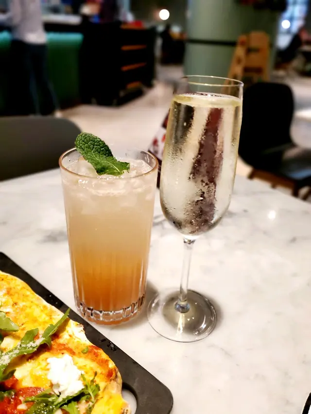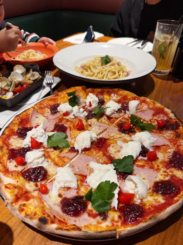 好似好耐無食pizza🍕放假就去咗奧海城嘅Pizza Express 呢度裝修都幾大 舒適得嚟好有空間感兩個人都好肚餓 除咗Pizza之外 仲叫咗小食同意粉share🍽️最近仲多咗啲新款 開心仔 又可以試新野ꕥ 風乾火腿蝦卷其中一款新推出嘅意式小食✨估唔到ham同蝦肉都咁夾 蝦肉夠彈牙令整體更有口感 另外仲有蜜桃🍑營造出鹹甜鹹甜嘅感覺 ꕥ 烤焗雞翼由細到大嘅習慣 去親食pizza都一定會叫雞翼食😆一份6隻 share最好不過 雞翼微脆 調味適中 醬汁而家轉咗蜜糖芥茉醬 較為清新 啱晒我口味 ꕥ 意式肉迷薄餅Pizza都係揀咗新款 呢個Meat Lover最特別之處就係冇落蕃茄醬 而用咗artichoke sauce 去替代🍕主要配料係風乾豬面肉/肉丸 另外仲有鼠尾草同羅勒 我最鍾意係加咗合桃 食食下會有脆脆嘅口感 層次豐富ꕥ 蘑菇燴長通粉 又發現新大陸😌而家有長通粉啊 個人一直偏好用匙羹𢳂嚟食嘅粉🥄上枱已經聞到好香嘅松露油香氣 配料雖然只有蘑菇 不過已經食咗好多肉 所以主食揀呢個配搭對我哋嚟講啱啱好飲品依然多樣化✨除咗叫咗杯cappuccino 仲點咗杯嘅凍柚子檸檬梳打 清新解渴 建議將薄荷葉加埋落去 飲落有少少薄荷味滲出 更清涼🍹查看更多