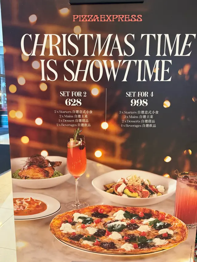 同一大班frd 子最好食Pizza🍕! 黎到食肆林立嘅奧海城,呢期搞緊X'MAS  event,夜晚好旺,要黎#Pizzaexpress 記得訂定枱!!餐龐已佈置成聖誕氣氛,仲有長枱卡位坐,絕對係好啱我哋年輕人,或者帶小朋友去家庭樂😋AR影相遊戲:掃描二維碼, 分享照片到PizzaExpress社交媒體, 有機會贏取禮券。CHRISTMAS SETS 聖誕2人套餐$628💕麵包球聖誕樹🎄Dough Balls Christmas Tree麵包球疊砌成聖誕樹形狀,熱辣辣外脆內軟,球與球之間仲可拉絲。香濃芝士味讓人一吃就上癮。💕牛肉醬焗薯皮🎄Baked Potato Skins with Beef薯仔一開為二入爐焗,一共有四個,呈現得像個。表面佈滿唔少牛肉醬,食到底仲有點薯蓉。💕 意大利軟心芝士紅莓火雞薄餅🎄Turkey Burrata CranberryPizza 全部即叫即焗,屬於薄批底,咬一口,批底夠香脆鬆軟, 滿口紅莓嘅香甜外,不得不提的是薄餅上的芝士,呈現軟雪炎軟心芝士,勁邪惡。口感令人難忘🤤💕烤雞松露米粒意粉🎄Spring Chicken with Truffle Orzo由烤箱烘烤出爐既烤雞,烤雞大件厚肉,外皮酥脆,且一滴油都沒有。米粒狀意粉,口感特別之餘又creamy。💕飄雪薑餅人蛋白餅🎄薑餅人好可愛啊❤️,一層層水果同蛋白忌廉堆砌成雪山,仲有清甜庶糖做底,女生至愛。💕熱紅莓玫瑰荔枝綠茶🎄Hot Cranberry Rose Green Tea儀式十足,又可與友人分享。💕生啤酒(細)🎄查看更多