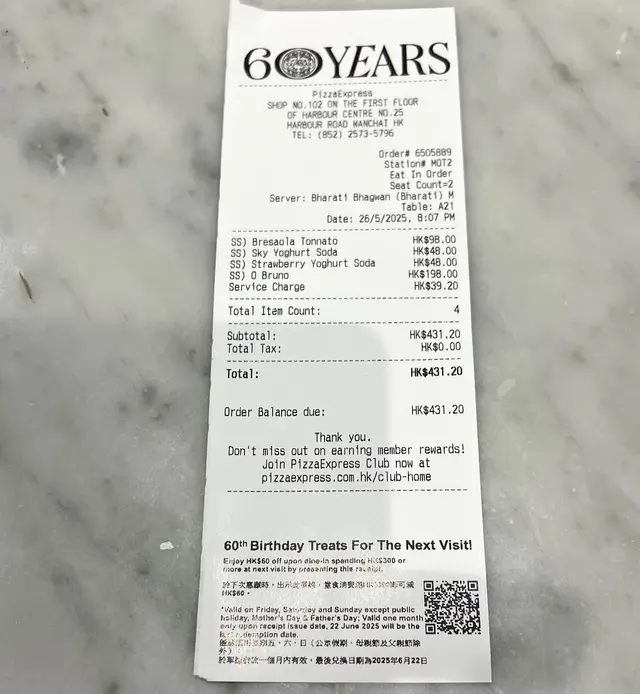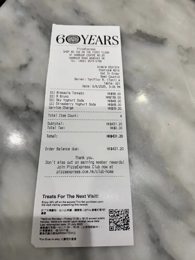 PizzaExpress (海港中心) (灣仔) 網上訂座即賺Rice Dollars 網址: https://s.openrice.com/QrbS0SZ0D00 地址: 香港灣仔港灣道25號海港中心1樓102號舖