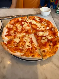 餐牌比起平時食既pizza express 少選擇,只有兩款combo,半自助式的,自己出去吧台倒水,用紙杯裝,不夠高級。食物質素還可以,蒜蓉包好食!雞翼都好食。四式芝士pizza是芝士控必叫,但食多幾塊有啲漏,整體調味較濃,我要飲3杯水先足夠。