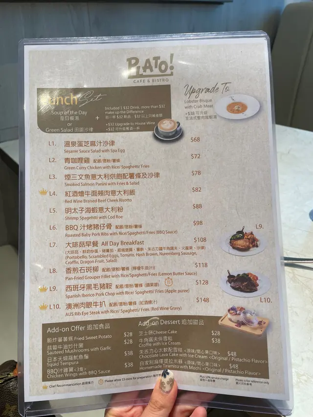 Plato Cafe & Bistro (Mikiki) (新蒲崗) 網上訂座享低至9折優惠兼賺Rice Dollars 網址: https://s.openrice.com/QrbS0UbSD00 地址: 香港新蒲崗太子道東638號Mikiki 1樓116號舖 電話: +852 34919739