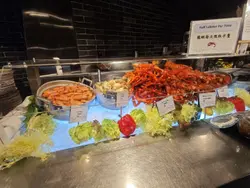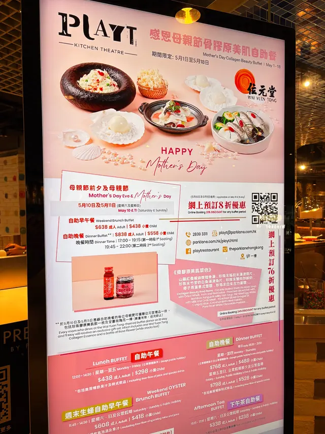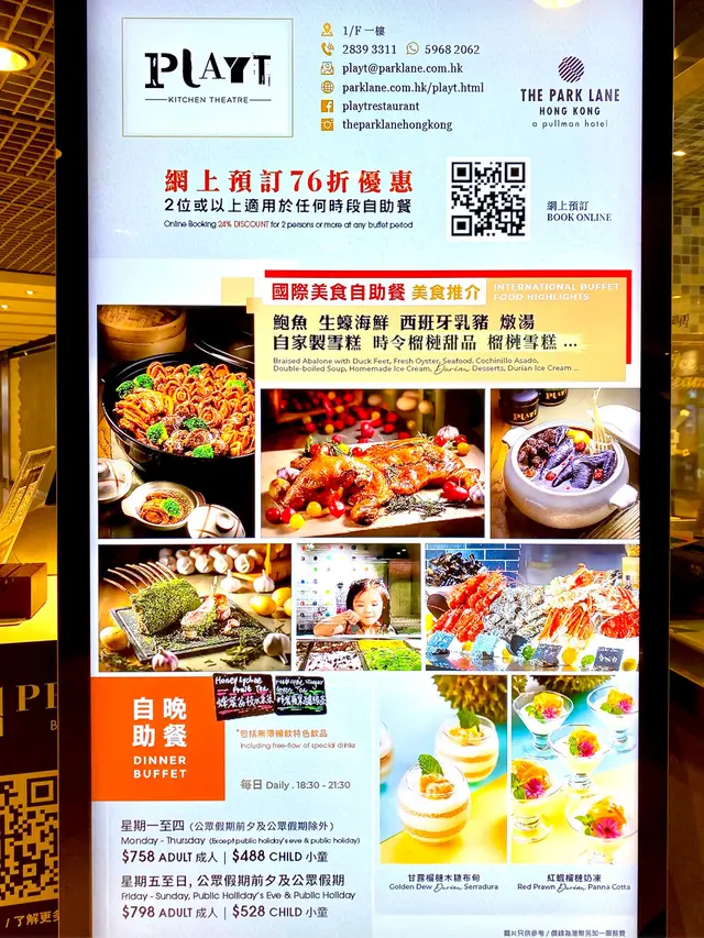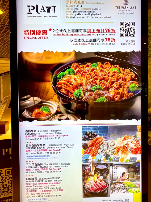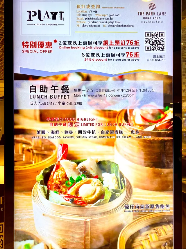 今年想同老公食自助餐慶生,每次經過這食店都見倒人山人海,相信品質一定唔差,所以打電話訂,若用滙豐信用卡簽帳可享8折,如果官網訂位更享 75折,我最後選擇了電話訂位,因為想坐窗邊和寫生日祝福牌。當日我們訂了 6.30pm,但早15分鐘到達,食店亦提早讓我們進入。我們安排坐窗邊位置景觀不錯,訂位時亦特別要求了。食店裝修比較前衞,以特別的牆紙和掛畫為主,大部份都是方形怡為主,枱與枱之間都算闊落。先出我走一趟看看有什麼食物提供:海鮮類:首先緊糸攞海鮮啦,我們一早行左海鮮檔所以唔使等太耐,有龍蝦(每次限取半隻),蟹鉗,鱈蟹腳, 蝦,海螺,青口;龍蝦膏軟滑,蝦爽口,除了蟹腳比較鮮甜,其他海鮮都唔鮮甜,海螺通常會幾鮮甜但竟然令人失望。生蠔:每次提供即開生蠔2隻,肉質偏瘦,味道略淡欠鮮味。飲品:有2款自助飲料,荔枝茉莉茶和蜜桃水果茶,蜜桃水果茶清香易入口,荔枝茉莉茶味道較濃。燉湯:味道清甜,湯料有好多瘦肉,所以肉味濃郁。西班牙乳豬:這是今晚最欣賞菜式,外皮香脆不油膩,肉質嫩淋,沾些醬料可減油膩感,由於我是食肉獸,我一共 encore了3次。安格斯牛扒和小羊肩腿:牛扒肉質軟淋但畧嫌牛味不足,小羊肩腿口感硬而且欠羊騷味,我本身很喜歡食羊是因為牠有其獨特的味道,所以缺乏這味道不是太理想。燒乳鴿:調味剛剛好,外皮口感香脆不油膩,肉質嫩滑不肥膩,值得推介。大閘蟹:每位可享用2隻大閘蟹,蟹膏都算多但欠缺鮮甜味,另有蟹粉蒸豆腐,豆腐幼滑可口,飲杯薑茶可驅寒。甜品:飲埋甜品尚完美,楊支甘露酸甜美味,芒果味道夠甜,而焦糖燉蛋口感幼滑,味道不會過甜,雖然我唔糸甜品控,但都覺得值得encall。最後重頭戲就係老公生日cake,生日cake的朱古力裝飾都幾有心思,芝士蛋糕糸我至愛之一,味道豐富不會太甜膩。**對今晚食後感,無論食物質素和服務有落差,特別糸海鮮不夠鮮甜味,服務欠缺笑容,可取糸選擇種類夠多,但以這價位的自助餐就不是我預期。…查看更多