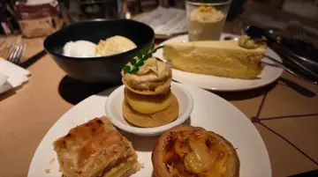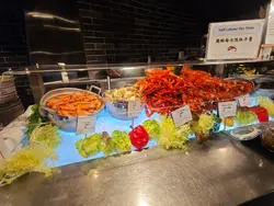 PLAYT 咖啡廳主打全天候自助餐,今次親身試過午市 buffet,真心覺得係一間「性價比高」又有誠意的酒店餐廳。一入場,唔使諗,直奔甜品區先!🍮🍫雪糕櫃係焦點之一,Moutai (茅台)、開心果、榴槤三款口味真係夠晒癲!茅台雪糕有淡淡酒香,唔會太濃,啱晒想試新嘢但又唔想醉;開心果香滑得嚟唔膩,榴槤就重口味 fans 至愛,香味勁爆,入口即化 🤤。仲有朱古力噴泉🍫、即製窩夫🧇、蛋糕🍰、布甸🍮,款式唔算誇張多,但每樣都見心思,唔係求其砌出嚟嗰種。🥗🍞🧀 食完甜品,返轉頭慢慢 explore 冷盤區。麵包款式唔少,外脆內軟,配埋火腿、芝士,簡簡單單已經好滿足 🥖🧀。沙律吧都唔錯,菜新鮮,醬汁唔會太 heavy,食落清爽 🥗。🦐🦪🍣 海鮮方面有蝦🦐、青口🦪、蜆、蟹腳🦀樣樣齊,全部冰鎮得宜,鮮味唔輸晚市。最驚喜係泰式生蝦刺身 🇹🇭,酸酸辣辣好醒胃 🌶️,蝦肉爽口唔腥,幾有特色。日式刺身🍣雖然唔算多款,但三文魚、吞拿魚都有,切得厚身,唔會一夾就散晒 👍。🍲🐓🥘 中式燉湯係我心水之一 🍲,當日飲到花膠雞腳湯 🐓,湯底清甜,材料足料,飲完真係有種「補返條筋」嘅感覺 💪。其他熱食就中西合璧,有燒肉🍖、焗薯🥔、意粉🍝,味道唔錯,唔會太鹹,啱晒唔想食得太 heavy 嘅人 🧘♀️。整體而言 勝價比高 值得試…查看更多