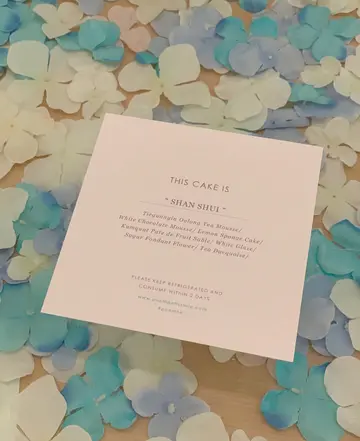 My friend who got the cake from me said it was totally fine, it's just me though haha! Too picky!I still love the design, and the name of the cake - 'Shan Shui'. The name of it refers to traditional Chinese brush paintings, but the pink flower is very westernised and looking modern. It stands out and became a juxtaposition. Very cool!!