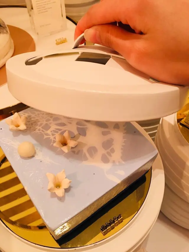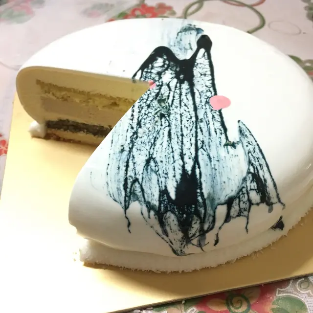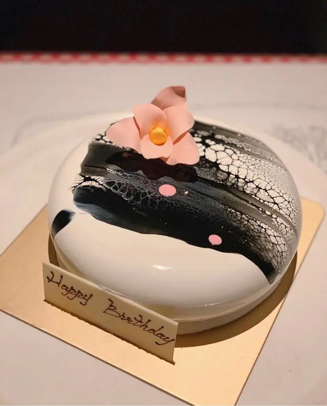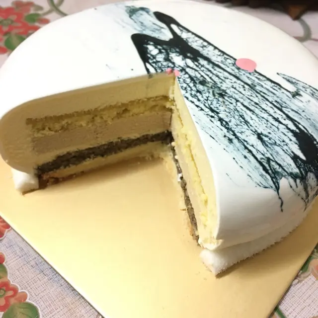 My friend who got the cake from me said it was totally fine, it's just me though haha! Too picky!I still love the design, and the name of the cake - 'Shan Shui'. The name of it refers to traditional Chinese brush paintings, but the pink flower is very westernised and looking modern. It stands out and became a juxtaposition. Very cool!!