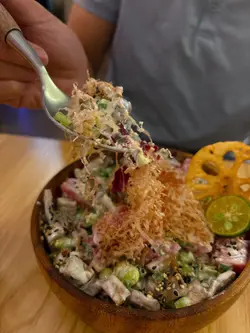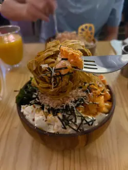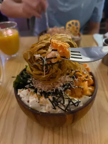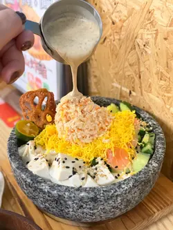 呢度嘅壽司飯同傳統日式嗰種唔同,係用咗夏威夷風格嘅Poke Bowl概念,配料自由搭,但今日重點推介兩個隱藏食法:Shaka Sushi Rice 同 Mahalo Sushi Rice!首先講Shaka Sushi Rice,基底係醋飯混咗少少壽司醋,凍凍哋幾開胃。重點係佢嘅醬汁!本身已經有秘製醬油底,但記住叫店員加多啲醬,因為佢哋嘅特調醬汁帶微微酸辣,撈埋三文魚粒、吞拿魚、蟹籽同青瓜,每一啖飯都掛滿汁,又唔會太鹹,食完成個飯都唔會膩!至於Mahalo Sushi Rice,更加係驚喜之作!佢嘅醬汁基底似係芝麻醬混咗啲燒烤醬,甜甜哋又有堅果香。強烈建議加多醬,因為佢嘅醬同飯上面嘅材料(例如牛油果、芒果、炸蒜)超夾,撈勻之後飯粒濕潤得嚟仲保持到口感,仲會食到淡淡椰香,感覺好有熱帶風情!兩個飯嘅配料都可以自己微調,但如果跟足店家預設搭配已經好完美。另外,佢哋嘅份量夠大,女仔可能食唔嗮,男仔就啱啱好。拎到附近公園或者返office慢慢歎~ 總之,鍾意濃味同醬汁控嘅,呢兩款飯絕對係灣仔區必試!…查看更多