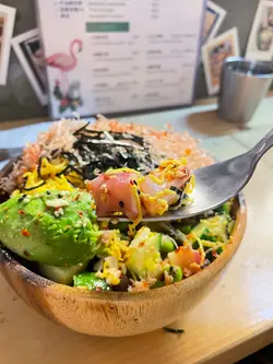 隱身灣仔街角的Poke Bowl專門店,憑著「倒瀉籮蟹」級爆量食材殺出重圍!店主每日清晨直送挪威三文魚、日本吞拿魚刺身,厚切近1cm的魚生鋪滿碗面如彩虹壁畫,基底選用雙倍壽司飯或羽衣甘藍沙律,堆料高度直逼碗緣,浮誇視覺引爆social media洗版潮。魔鬼細節征服味蕾:✅ 獨家黃金比例醬汁:夏威夷風味醬混搭山葵蜜糖醬,嗆辣與清甜在舌尖跳探戈✅ 隱藏版配料升級:+$15享爆漿三文魚籽/炙燒和牛片,海陸雙衝擊✅ 火山熔岩碗:溫泉蛋刺破瞬間裹住魚生,醇厚蛋液注入靈魂層次招牌組合——肥美三文魚+爽甜帶子+蟹肉絲+醃漬紫薑,魚生份量目測佔碗70%,撥開食材竟挖出底層秘製醃蘿蔔粒與烤蒜片!店主堅持「碗底驚喜哲學」:「食到最尾都要有高潮!」難怪OL圈流傳:「午餐食一碗,飽到晚餐都省掉!」壓軸彩蛋:自選配料區竟有30+款,從罕見海葡萄、醋漬鯖魚到烤菠蘿,免費加爆鷹嘴豆+玉米筍+毛豆,食肉獸更可豪疊雙倍刺身。透明廚房現點現做,看著師傅狂勺魚生絕不手軟,未入口先體驗「視覺飽足感」——這碗灣仔最兇Poke,絕對是香港CP值破表之作!…查看更多