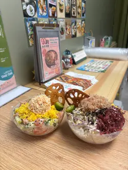 今日試咗兩碗幾有創意嘅夏威夷飯同埋小食,整體嚟講幾驚喜!首先講吓「炸雞尾酒蝦」,個名已經夠晒得意,炸粉薄脆,蝦肉爽彈,點埋個醬汁好開胃,係一道唔錯嘅前菜。主角之一係自選夏威夷飯,我揀咗三文魚做基底,壽司飯醋香恰到好處,唔會太酸。材料好豐富:溫室青瓜清脆、蟹棒沙律甜甜地,仲有滑溜嘅雞蛋絲同埋重點——加咗鮮蟹肉!蟹肉鮮味突出,唔係求其用罐頭貨。最正係個果仁芝麻醬,堅果香濃稠,撈勻所有食材一齊食,口感同味道層次即刻提升,芝麻同果仁碎增加咬口,正!另一碗揀咗雞胸肉,配料有豆腐、洋蔥同埋青瓜,醬汁揀咗Wasabi yogurt,芥末味溫和得嚟又帶少少酸奶滑溜,幾特別飲品方面,冷壓蘋果汁清甜解膩,牛油果奶昔濃稠順口,飲到天然果香。兩杯都係健康之選。總括而言,呢餐食材配搭有心思,尤其欣賞佢哋嘅自選醬料…查看更多