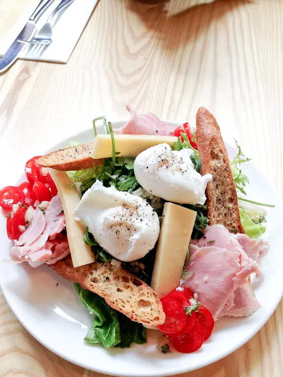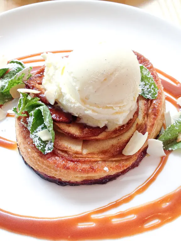 CappuccinoIt's a little 1 toned and slightly woody and nutty after adding milk, definitely on the roasty side. Fairly old-school Australian-Italian coffee style especially after flying them into Hong Kong from Melbourne. Think it will fare better with a better Blend and Roasting calculating in the flight time and whatever science is behind coffee? But the Barista here made these pretty well and the milk was smooth! Pity about the base 5 Senses Coffee, which carries a lot more potential in home town down under sigh... .Friend's Cheese and Ham Salad -This looked better than the Menu suggested indeed. Apparently it was pretty good with poached eggs on top - the latter were slightly overcooked. .Apple Tart with Home Made Vanilla Ice Cream & Mint, Salted Caramel Sauce - This was by-far the best product I have had in this establishment. Surface was caramelised well and the apples were cooked until transparent sweet but not dry. Liked the ice cream with real vanilla essence too! Salted Caramel Sauce was a good addition. Apparently has some Cinnamon input but couldn't detect much. …查看更多