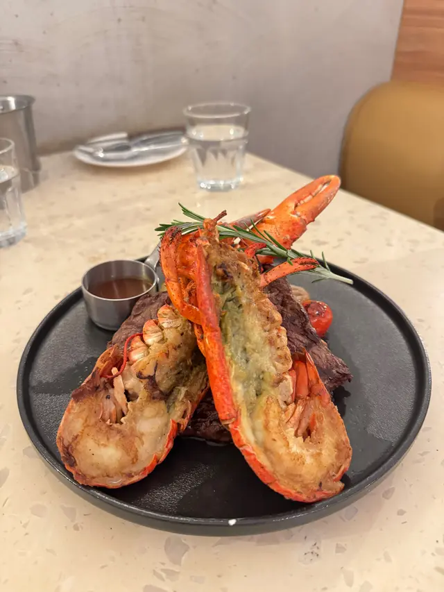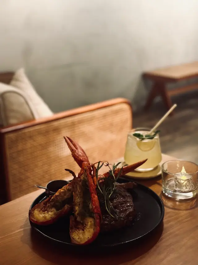 同朋友慶生嚟到呢間隱藏喺佐敦街角嘅西餐廳,意外發現性價比超高嘅海陸二人套餐!餐廳氛圍好chill,燈光柔和得嚟又適合打卡,絕對係約會聚會首選~叫咗一個龍蝦牛扒套餐二人套餐,主打係龍蝦同牛扒,可以另外加$68升級,每人半邊龍蝦添✿ ✫ ✿ ✿ ✫ ✿ ✿ ✫ ✿ ✿ ✫ ✿ ✿ ✫ ✿ ✿ ✫ ✿ ✿ ✫🥢薯蓉忌廉湯配蒜蓉法包湯品驚喜滿分!綿密薯蓉融入香滑忌廉,飲到粒粒薯仔口感。蒜蓉法包烤得酥脆,蘸湯食簡直絕配~簡單卻令人回味嘅前奏🥢炭燒肉眼扒拼波士頓龍蝦 (+$68升級全隻)必須要讚呢個主菜!龍蝦新鮮彈牙,炭燒香氣撲鼻,肉眼扒叫咗五成熟火候掌控得剛剛好,切開仲係粉嫩色澤。會提供鉗去拆龍蝦殼,蘸埋燒汁真係邪惡到極點!牛扒肉質軟嫩帶炭香,海陸雙重享受一次過滿足~🌟🥢牛油香煎帶子鮮蠔汁意大利飯 (+$128)帶子煎到金黃微焦,外脆內嫩超鮮甜。意大利飯用忌廉汁同鮮蠔汁燉煮,每粒飯都吸滿海洋精華,濃郁蠔味中帶住奶油香,口感creamy又唔會過膩,推薦必點🥢是日精選甜品:朱古力雪糕濃郁巧克力香氣撲鼻而來,雪糕質地細滑得嚟唔會過甜🥢特調cocktail +💰59Love Shot混合桃香與薄荷清新,朗姆酒基底夠曬爽快;Limoncello Spritz則係清爽檸檬香氣帶白葡萄酒優雅,兩杯都好適合配餐飲~✨✿ ✫ ✿ ✿ ✫ ✿ ✿ ✫ ✿ ✿ ✫ ✿ ✿ ✫ ✿ ✿ ✫ ✿ ✿ ✫整體來說絕對會回訪!人均$400左右就食到龍蝦牛扒高質組合,服務態度也好貼心。建議提前訂位,晚市經常爆滿喔~💯…查看更多