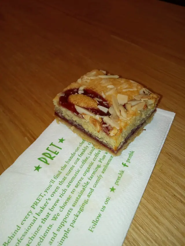 Whenever I walk past Marks and Sparks or Pret a Manger, it is always difficult to resist going inside.This time I ended up eating the Bakewell slice and a chocolate orange cookie.The cookie didn't have much orange flavour to it but you could slightly taste it which was good as it wasn't too artificial or overwhelming.The Bakewell slice was so damn comforting because of the fragrant almond aroma and sweet layer of jam at the bottom.It had a soft chewy texture.On another visit, I had the freshly baked croissant with tomato and Mozzarella cheese.It was quite nice but tasted like pizza because of the Mozzarella but personally I think it would taste better if cheddar cheese was used.…查看更多