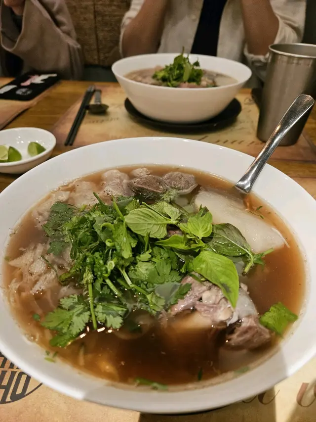 中環📍濃郁牛肉湯底Pho✲ 生牛肉湯河這家店隱藏在中環嘉咸市集附近,進去之前需要沿著一條斜路上去,所以有一點點難找😂。上桌的時候,熱騰騰的河粉🍜讓人食慾大開,湯頭掛滿了濃厚的牛肉香味,每一口都令人感到滿足💞。這道河粉的滑嫩口感讓人感覺驚喜,搭配那濃郁的牛肉湯底,不禁讓人想要一口接一口!而且,店內還提供青檸,讓你可以依照個人口味添加,增加一點酸甜的味道,令整碗麵更加清新可口,完美平衡了牛肉的濃郁感。至於生牛肉的部分,味道還好,建議選擇店內其他配料 ~。不過湯底絕對是令人值得再回訪的原因!查看更多