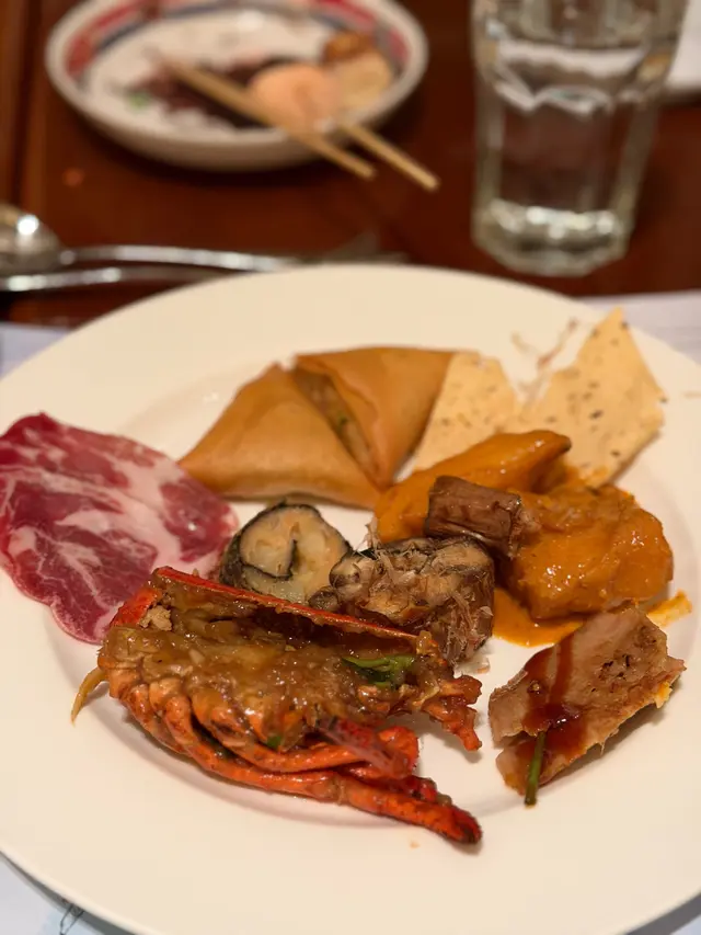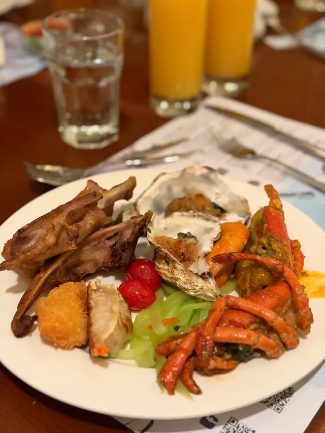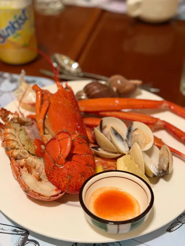 The Double Boiled Sea Whelk and Pork Lean Soup with Chinese Mushroom & Lily Buds is quite refreshing at first, thanks to its sweet and mellow taste! I had it three times; it's so good!The seafood selection isn't extensive; there aren't blue mussels, but there are lobster claws. The lobster claws and crab legs are also very fresh. I prefer the crab claws because they're tender, meaty, and sweet.