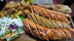 走進Prosit Bar and Restaurant,就像瞬間被傳送到慕尼黑啤酒節。這次點了餐廳期間限定的德國啤酒節套餐:德國豬手拼德國腸,再配上一杯細滑的生啤,完美。豬手份量十足,外皮香脆、內裡鬆化,啖啖肉香;搭配的兩款德國腸各有風味,一款濃郁,一款香草味豐富,肉汁飽滿。配菜有酸椰菜、馬鈴薯與沙律,酸甜平衡解膩,口感豐富。餐廳氣氛非常地道,滿滿異國情調,啤酒杯與裝飾都讓人有置身歐洲小酒館的錯覺。推薦坐在吧枱區,更能感受到熱鬧氣氛。啤酒方面,選了生啤,冰涼順口,非常適合搭配重口味的德國料理。整體來說,這頓飯無論味道還是氣氛都很出色,是尖沙咀一帶少見的正宗德式選擇。…查看更多