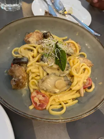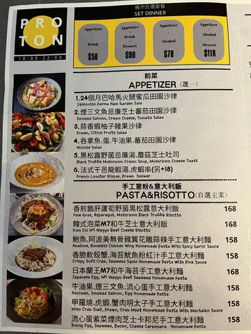 朋友知道我喜歡吃西餐,推介了這間位於教育路的Proton給我~ 來到餐廳,發覺內裡空間感十足,樓底特高,配上特色水泥牆身,走工業風格,環境都幾chill~當日餐廳供應7款午餐,每款都奉送新鮮麵包,另可選沙律/ 餐湯!忌廉蘑菇湯蘑菇湯熱度十足,又夠creamy都幾好喝~ 配上外脆內軟的麵包,很搭配呢!青咖喱椰香海鮮旋風捲捲意粉 ($92)海鮮捲捲意粉的配料有青口、魷魚圈& 爽口大蝦等,青咖喱椰香汁味道清新,再配以煙煙韌韌的捲捲意粉,很適合夏天享用~蒜烤澳洲西冷扒、有機生菜、薯餅、煎蛋 ($148)7成熟的澳洲西冷扒,肉味濃郁又夠軟淋,很juicy; 配以新鮮嫩綠的有機生菜、薯餅、煎蛋等,實在相當豐富!!Proton Snack Platter ($108)一客小食拼盤,已有齊5款小食,分別為: 炸蝦、炸雞、炸單骨雞翼、脆香軟殼蟹& 薯條; 配以3款醬汁,分別為蜜糖芥末籽汁、黑松露沙律醬及茄汁,配以香脆不油膩的炸物,實在是錦上添花!!Green Tea Tiramisu ($80)翠綠的Green Tea Tiramisu賣相很吸引,即使吃得多飽仍然可以吃得下甜品~ 幼滑的綠茶淡忌廉,甜度適中,配以軟稔的手指餅,整體配合得很好!! 個人更為欣賞店家用上精緻的Le Creuset餐碟,可見店方很注重細節~Golden Beach (正價$60) (跟餐半價)Golden Beach用上Yuzu Lemon Pineapple 為主調的梳打特飲,味道酸甜又解膩,很適合夏日享用,如果再大杯一點則更好😊Love Potion (正價$60) (跟餐半價)友人所選的Love Potion,用上Rose Lemon Soda,面層灑上玫瑰花瓣,感覺很浪漫. 味道同樣是酸酸甜甜,亦很清新,友人很喜歡!!P.S. 原來餐廳下午2:30後也會供應下午茶餐,附上餐牌以供參考~Proton 元朗教育路83號地舖…查看更多