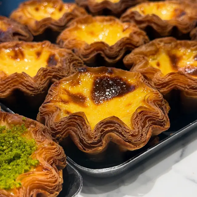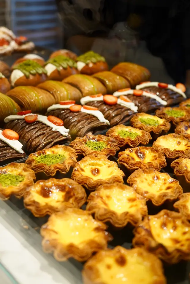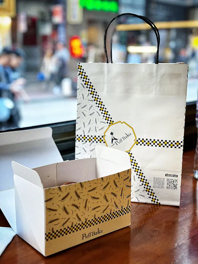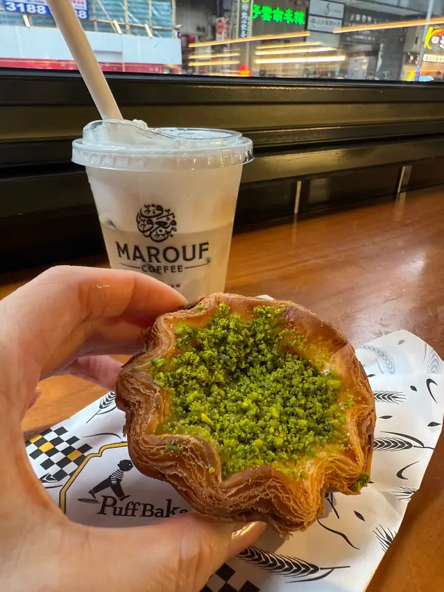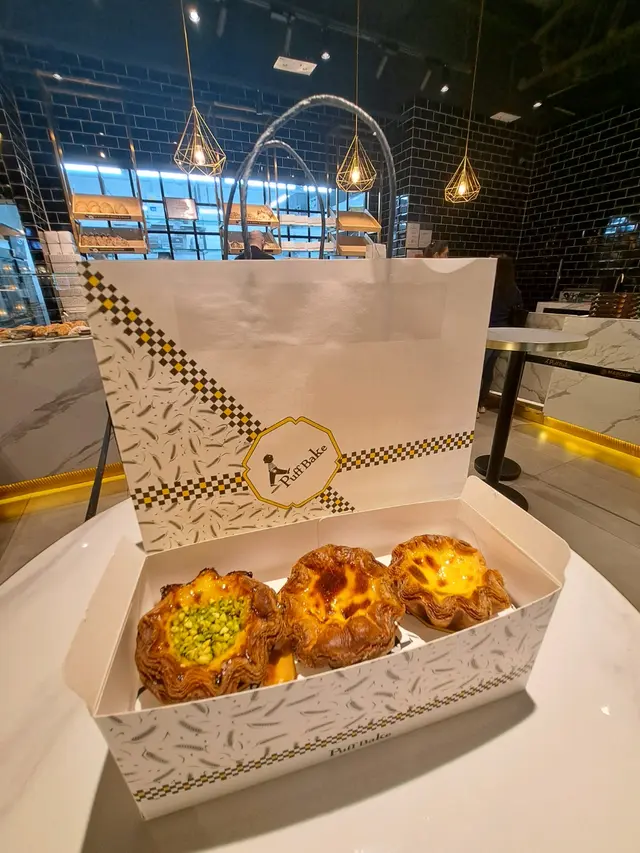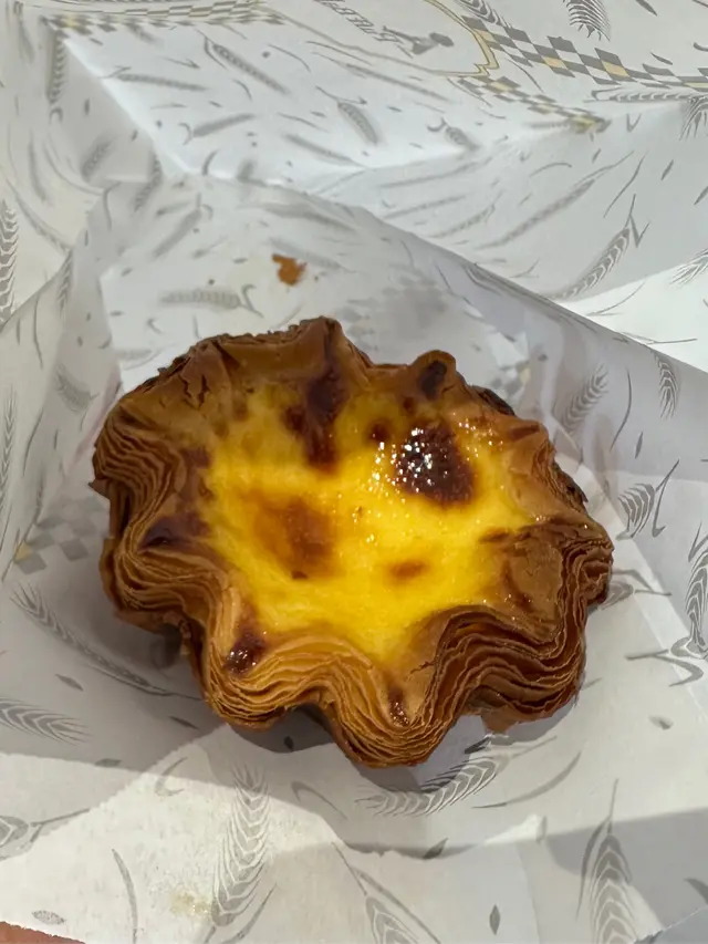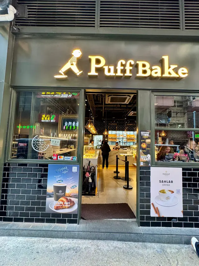 Puff Bake Sourdough Egg Tart行過呢間 Puff Bake 見到有賣咖啡☕️ 同埋有賣尖沙咀區遊客必買嘅花花形嘅千層脆底撻🌸見到門面好大同埋裝修都幾靚,加上又唔洗排隊,就買嚟試試佢🥡原來係酸種蛋撻嚟~味道都唔錯,唔會太甜~ 但係因為尖沙咀呢邊本身就有2間人氣撻舖頭😳 所以相比起之下會令人覺得佢哋嘅撻底做得唔夠多層同唔夠脆,比較起上嚟唔夠2間尖沙咀人氣店做得出色⋯⋯酸種撻底如果可以脆D就會好D…查看更多