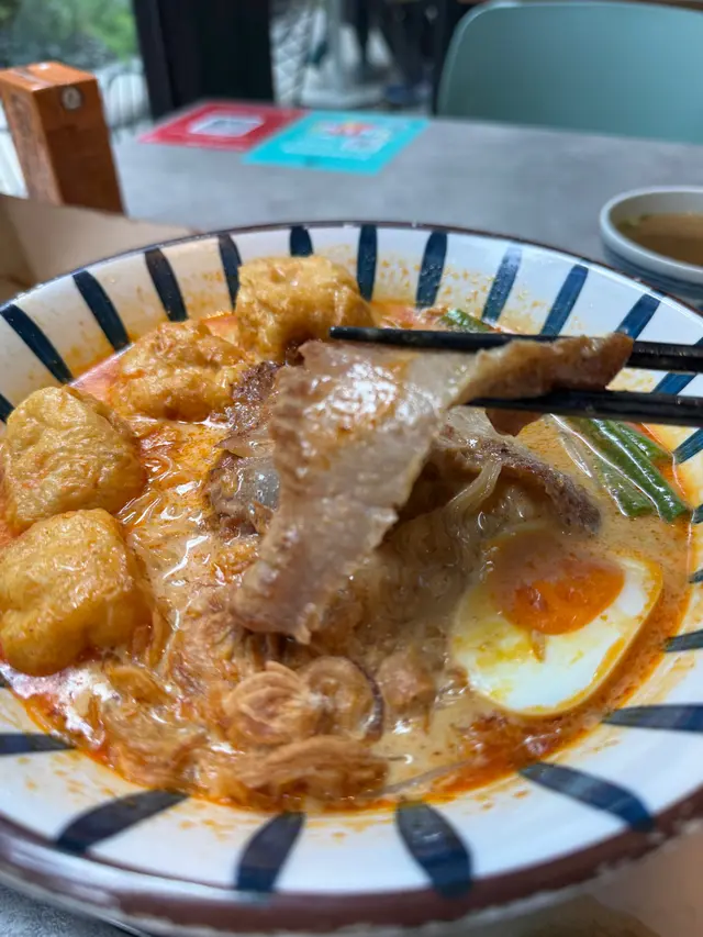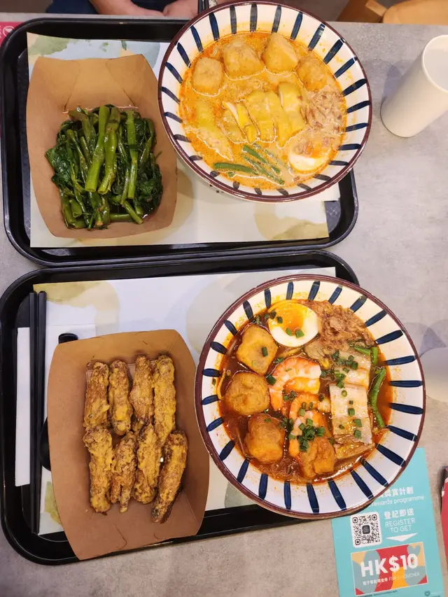 餐廳:Pulau地點:中環街市菜式:新加坡菜餐牌:兩點有茶餐。茶餐有9款飯粉麵作為主食,另外仲有多款輕食。價錢基本上係$80樓下。可以加錢要通菜或者汽水。去收銀落完單自己搵位坐。新加坡白胡椒肉骨茶配雞油香飯及油條 $72新加坡白胡椒肉骨茶好大碗,入面有排骨3件,豬肚4片,同原隻蒜。排骨都有唔少肉食,算淋。豬肚好爽口。蒜好淋。個湯白胡椒味非常重,少少辣喉嚨。另配豉油,辣椒,蒜蓉比你自己調味。雞油香飯大大碗,味道口感都唔錯。油條另上,少少脆。豬頸肉喇沙摻摻 $68 摻摻係黃色粗麵加幼身粉絲,粗麵有咬口而粉絲幼滑吸汁,呢個配搭加埋爽口芽菜超正!個喇沙湯香滑,辣度剛好,梛汁又夠,好惹味。配料有5片豬頸肉,好脆口有肉味又唔肥。其他配料有吸汁豆卜4件,半隻糖心蛋,豆角同脆脆。材料好豐富,水準真係好好。呢個價錢超抵。海南雞喇沙摻摻 $62六件海南雞超嫩滑,雞有雞味,好味又健康。馬拉盞通菜 加$32加配馬拉盞通菜用紙兜上,份量都唔少。有莖有葉,葉嫩莖脆,馬拉盞份量剛好,好夠味。總括而言,主食超抵食,我自己特別鍾意喇沙摻摻。…さらに見る