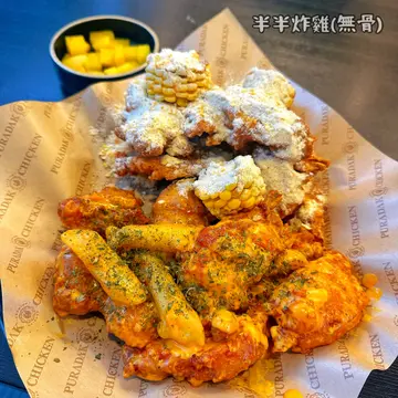 今日同朋友試咗PURADAK CHICKEN,主打多款口味韓式炸雞,我哋叫咗個雙拼加薯條,整體幾滿意!BLACK AGLIO CHICKEN黑色蒜香醬好濃味,蒜蓉碎鋪滿晒係面,食落香口又唔會太膩。炸雞外皮脆得嚟唔厚,肉質都算嫩滑,啱晒重口味人士!SWEET CHICKEN呢款甜醬炸雞比較溫和,醬汁甜中帶少少鹹,表面灑咗啲杏仁片,口感更豐富。MIXED FRENCH FRIES有普通薯條同薯格,炸得金黃香脆,份量都幾多。點埋醬汁好快清晒!整體黎講,炸雞同薯條水準不錯,價錢合理,兩個人食晒咁多樣都好夠飽。如果想試多過一款味,雙拼係不錯選擇推薦大家試下~…查看更多