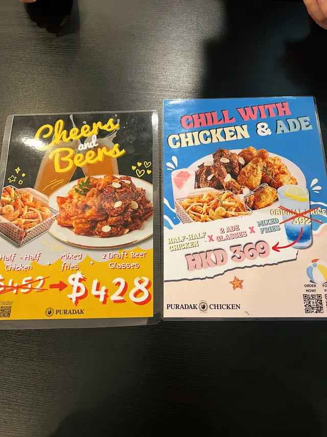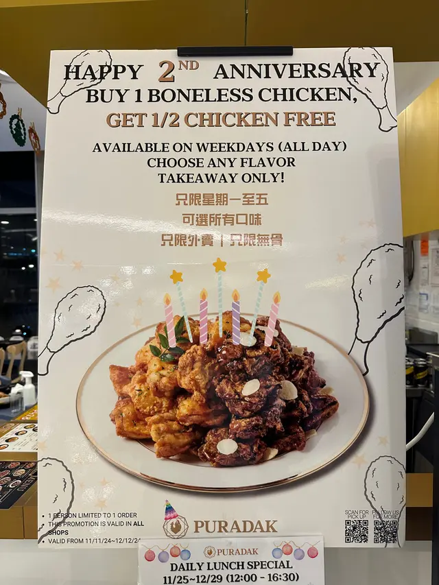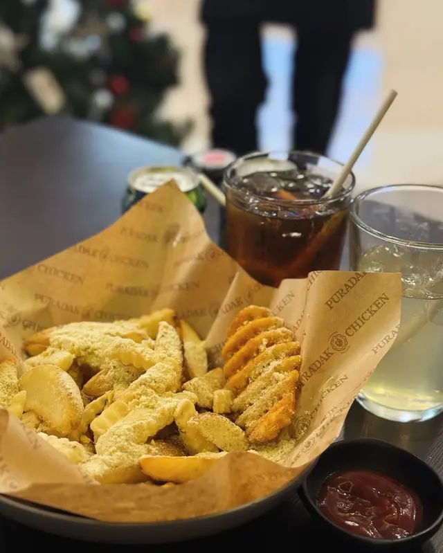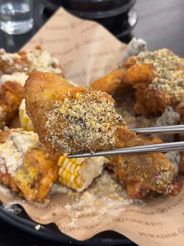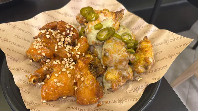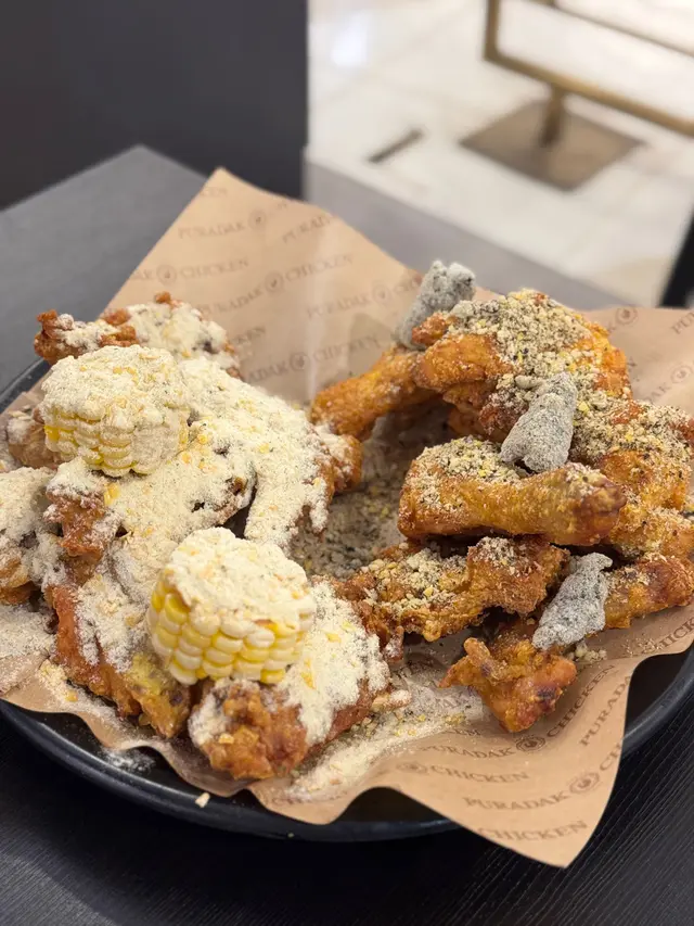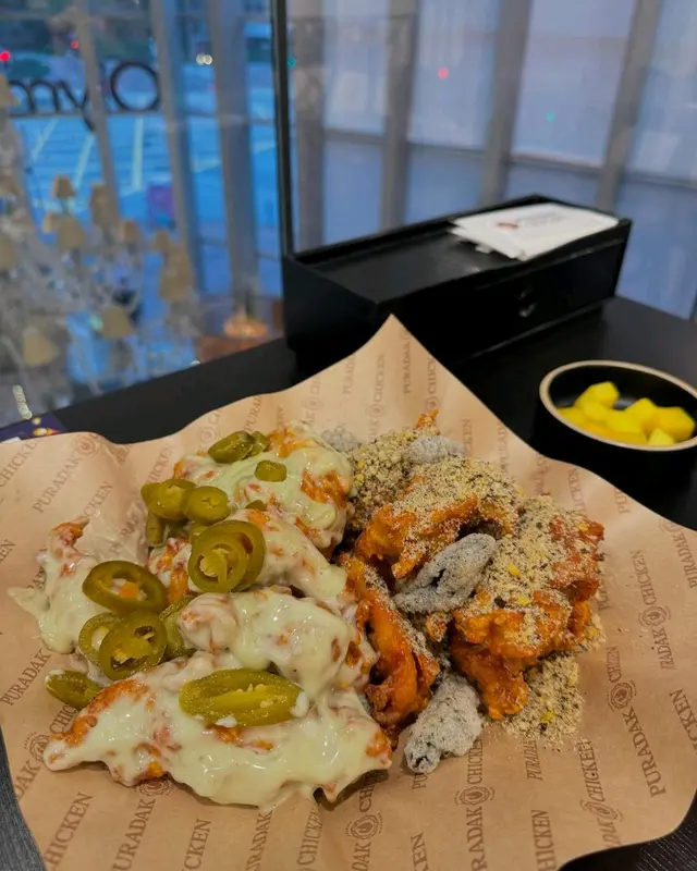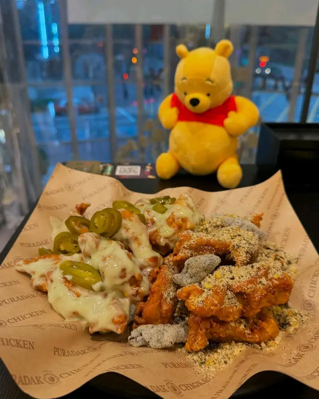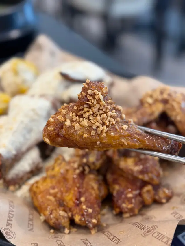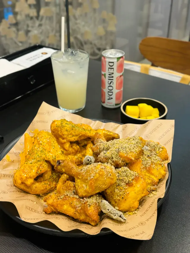 今日同朋友試咗PURADAK CHICKEN,主打多款口味韓式炸雞,我哋叫咗個雙拼加薯條,整體幾滿意!BLACK AGLIO CHICKEN黑色蒜香醬好濃味,蒜蓉碎鋪滿晒係面,食落香口又唔會太膩。炸雞外皮脆得嚟唔厚,肉質都算嫩滑,啱晒重口味人士!SWEET CHICKEN呢款甜醬炸雞比較溫和,醬汁甜中帶少少鹹,表面灑咗啲杏仁片,口感更豐富。MIXED FRENCH FRIES有普通薯條同薯格,炸得金黃香脆,份量都幾多。點埋醬汁好快清晒!整體黎講,炸雞同薯條水準不錯,價錢合理,兩個人食晒咁多樣都好夠飽。如果想試多過一款味,雙拼係不錯選擇推薦大家試下~…查看更多