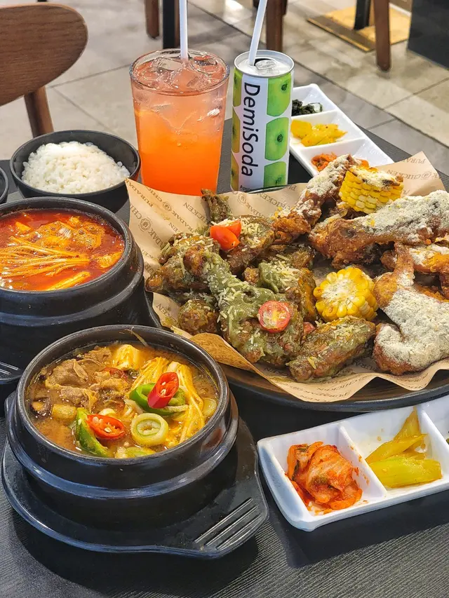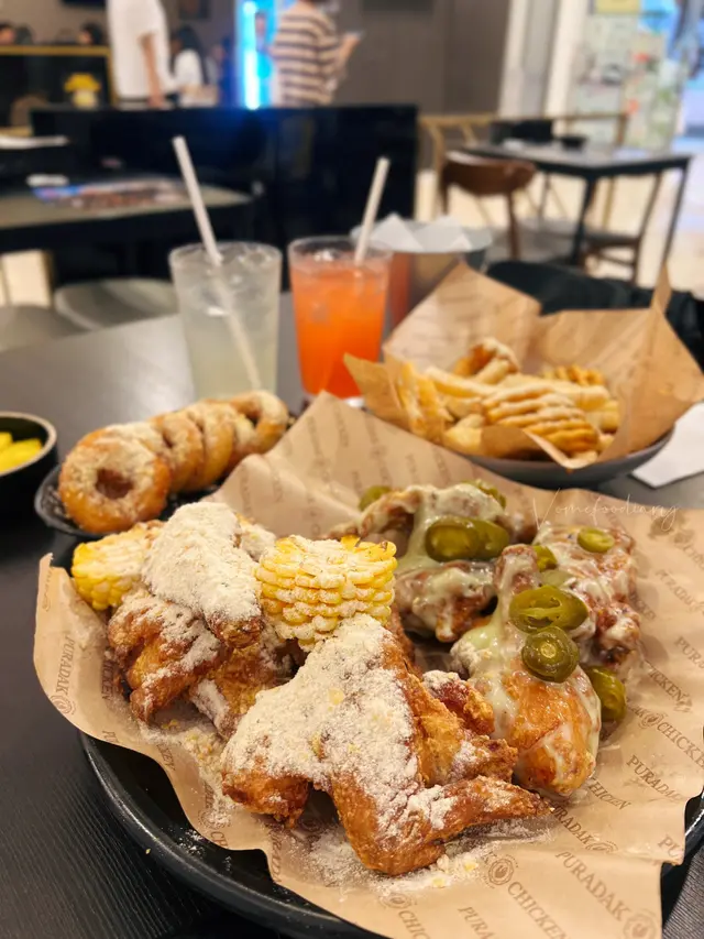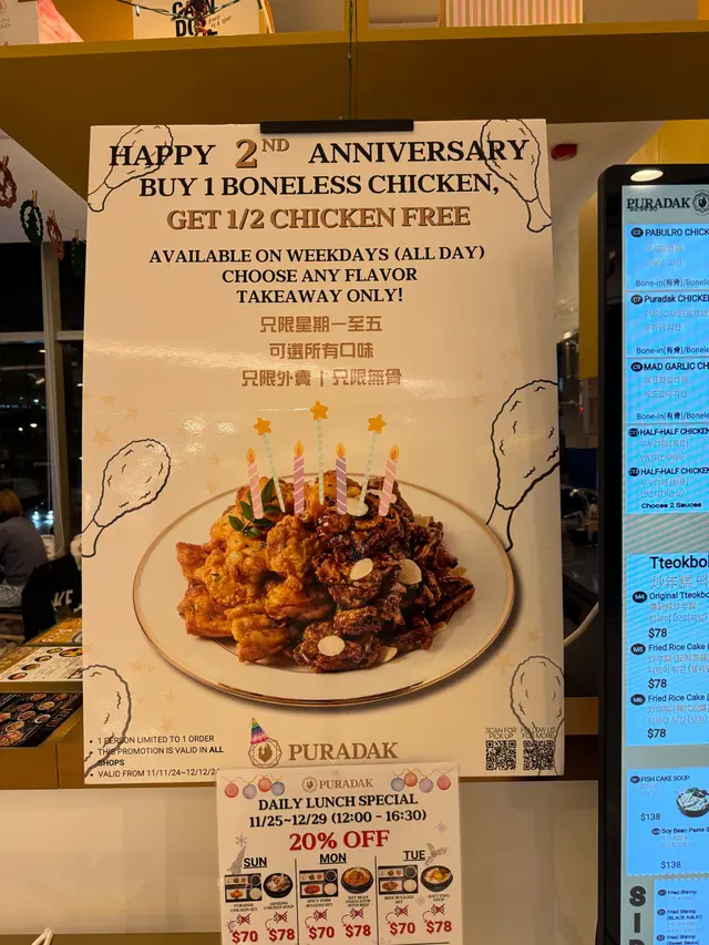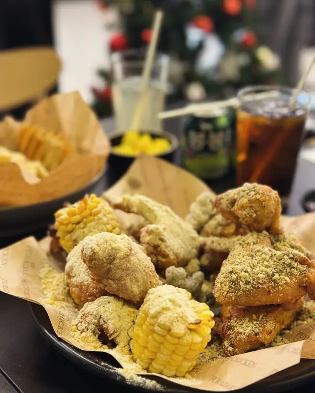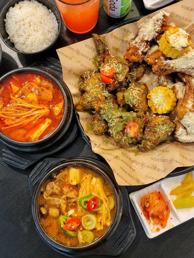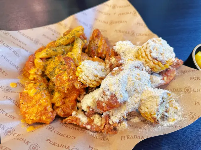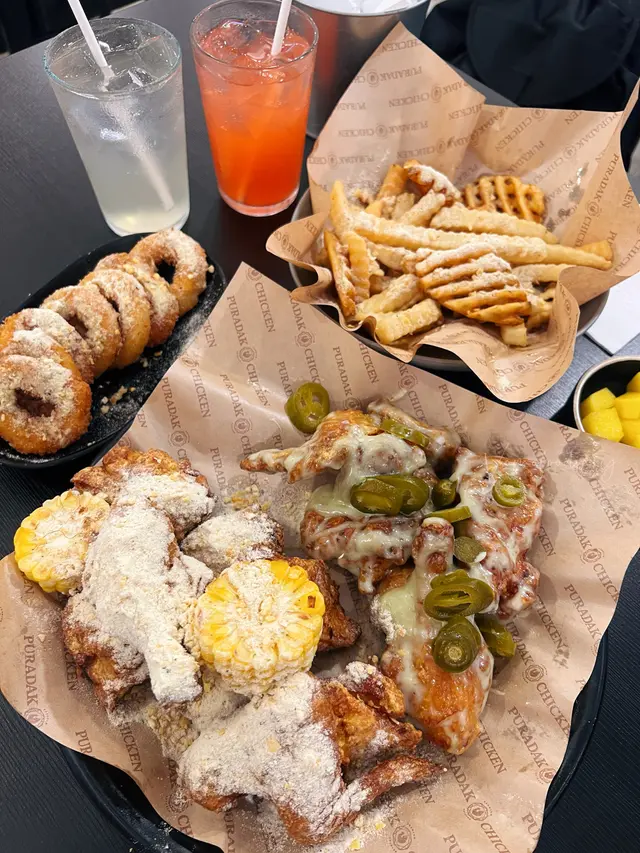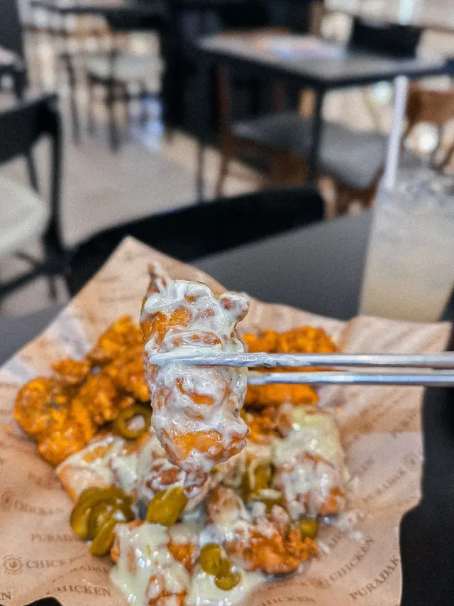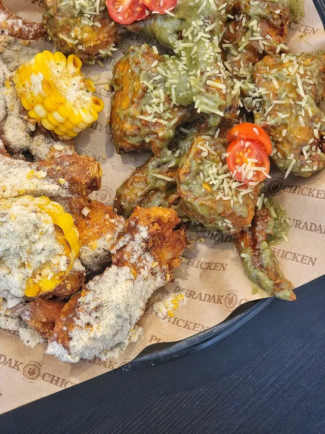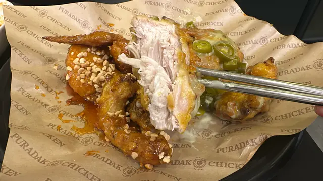 今日同朋友試咗PURADAK CHICKEN,主打多款口味韓式炸雞,我哋叫咗個雙拼加薯條,整體幾滿意!BLACK AGLIO CHICKEN黑色蒜香醬好濃味,蒜蓉碎鋪滿晒係面,食落香口又唔會太膩。炸雞外皮脆得嚟唔厚,肉質都算嫩滑,啱晒重口味人士!SWEET CHICKEN呢款甜醬炸雞比較溫和,醬汁甜中帶少少鹹,表面灑咗啲杏仁片,口感更豐富。MIXED FRENCH FRIES有普通薯條同薯格,炸得金黃香脆,份量都幾多。點埋醬汁好快清晒!整體黎講,炸雞同薯條水準不錯,價錢合理,兩個人食晒咁多樣都好夠飽。如果想試多過一款味,雙拼係不錯選擇推薦大家試下~…查看更多