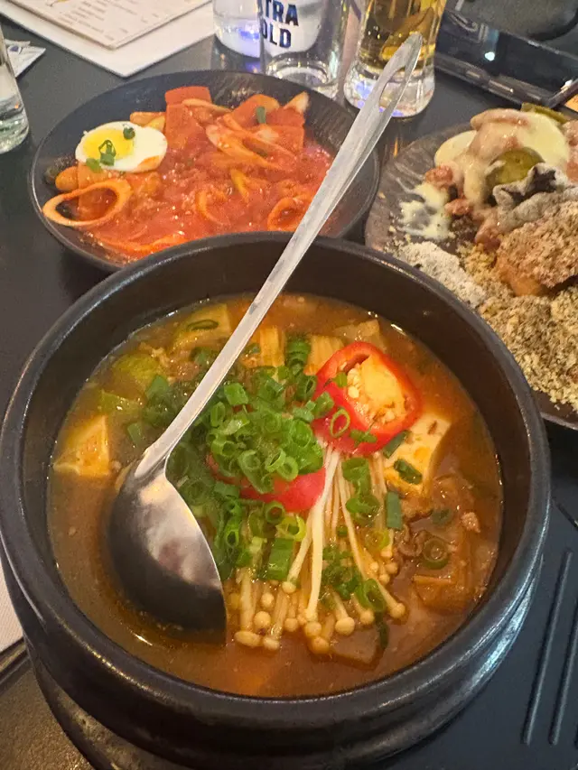 朋友生日,佢話想食韓國嘢,咁當然落嚟尖沙咀韓國街依度搵啦⋯⋯之前其實選定咗一間,點知入到去個職員話得60分鐘時間😱我笑咗出嚟,😆😆😆所以我哋即刻走,跟住就揀咗一間吖…..餐廳唔係好大,一般裝修都可以容納10零枱,啲食客都佔咗六七成嘅韓國人,都證明有料到,侍應有外國人有韓國的,但一般英文都OK..黃金時間都坐滿亦唔算好嘈…. 另外無限時呢!叫左傳統辣炒年糕,魚糕湯(2人份),牛肉大醬湯,半半炸雞(無骨)- 青陽辣椒MAYO/紫菜味,梅子梳打,西柚梳打,Terra啤酒日,真露It's Back0,忌廉芝士波,什錦炸薯,檸檬梳打,芒果梳打…..年糕就一般同埋唔係好熱,反而個魚膏湯同個牛肉大醬湯幾好食,同埋熱辣辣….. 炸雞都唔錯,尤其是佢啲醬汁幾出色…跟住第二轉叫左啲小食飲下啤酒飲下野,感覺上幾好都值得推薦….…查看更多