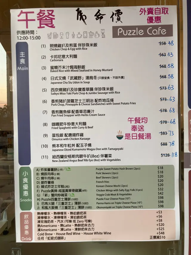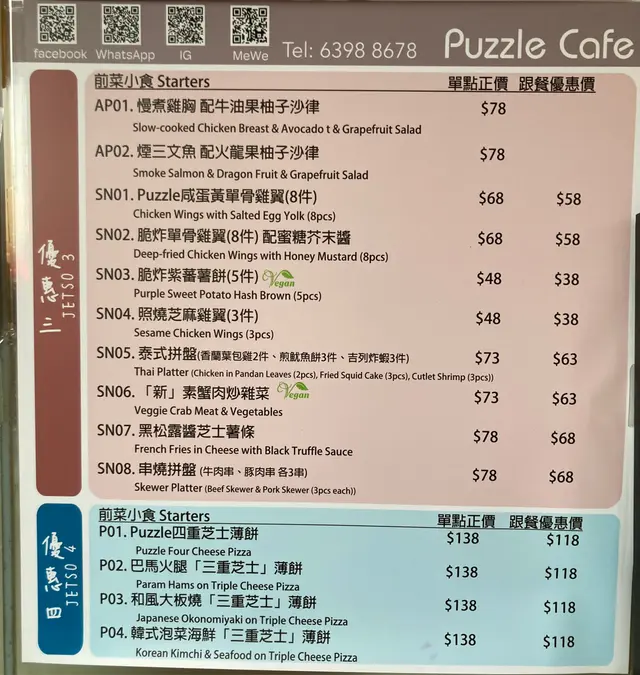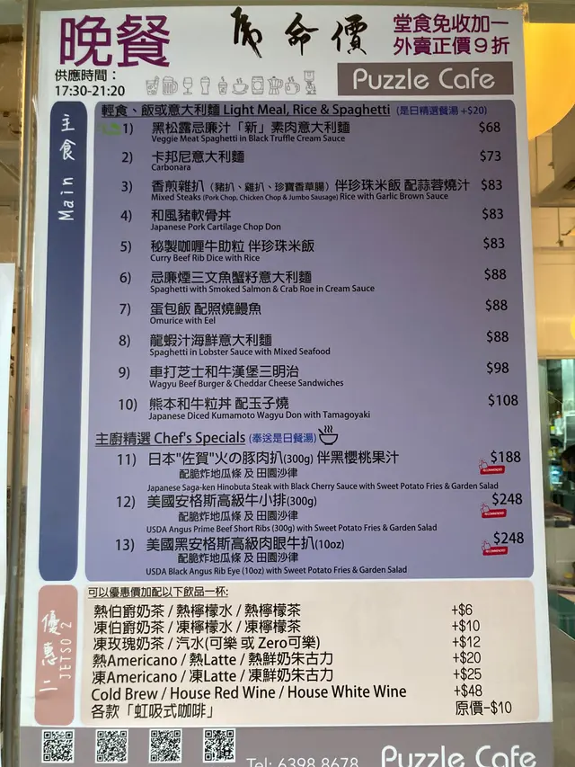 Puzzle Dining & Cafe (馬鞍山) 網址: https://s.openrice.com/QrbS0z2Y500 地址: 香港馬鞍山鞍祿街18號MOSTown新港城中心(5期)地下G30號舖 電話: +852 63988678