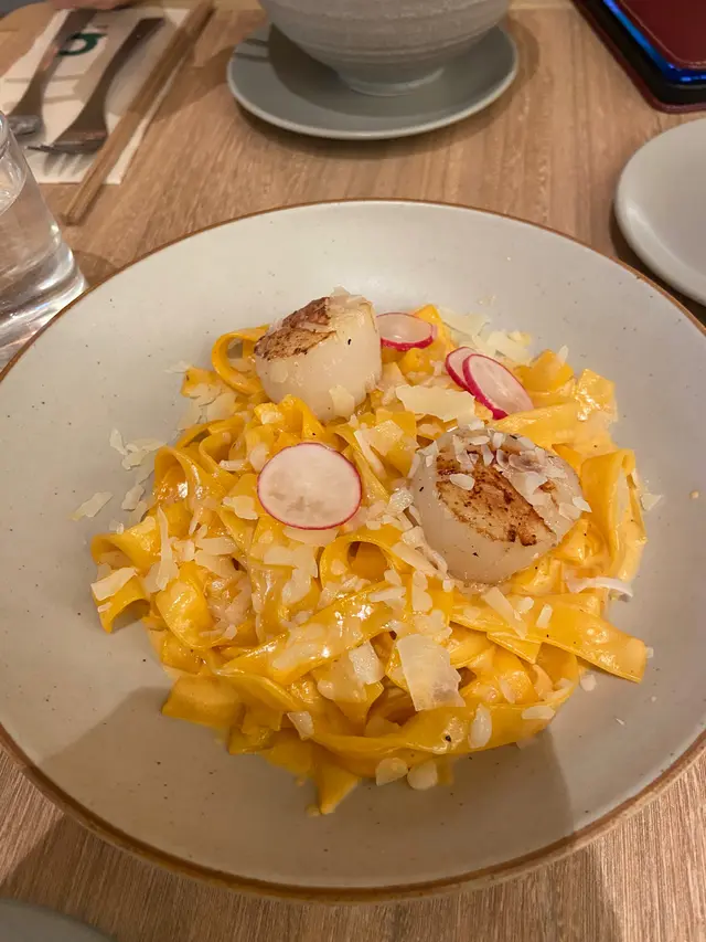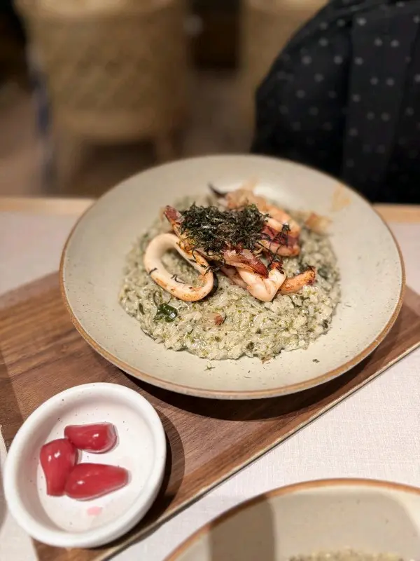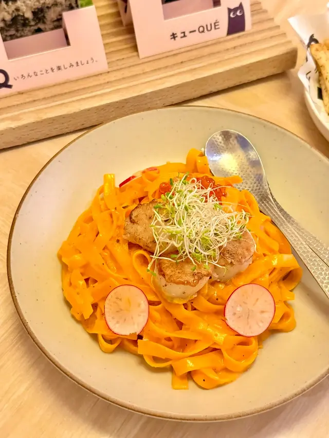 今次係QUE食左個lunch set好驚喜。叫咗個松葉蟹肉蟹膏忌廉汁意大利飯,真係超好食。一上枱就feel到好足料,入面蟹肉蟹膏三文魚子堆到滿瀉,仲有黃色菊花瓣點綴,好靚好有和風feel。米煮到creamy但粒粒仍然彈牙,忌廉汁下得啱啱好,唔會太濃太杰,仲滲咗蟹湯鮮味。蟹肉厚身又甜,蟹膏濃郁順滑,三文魚子一咬爆開即刻加分,一啖飯撈埋蟹肉蟹膏食,真心滿足。套餐仲包埋沙律同飲品,咁樣一set真係好夠食唔膩。環境光猛寬敞,坐得舒服,服務員好有禮貌又快手。食完好飽足又滿足,下次會想試埋其他野食…查看更多