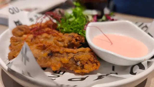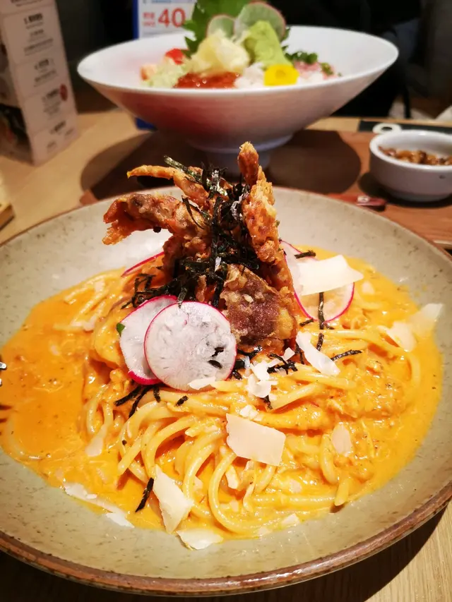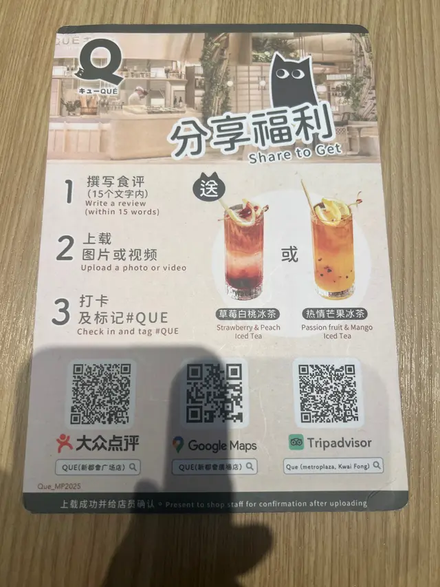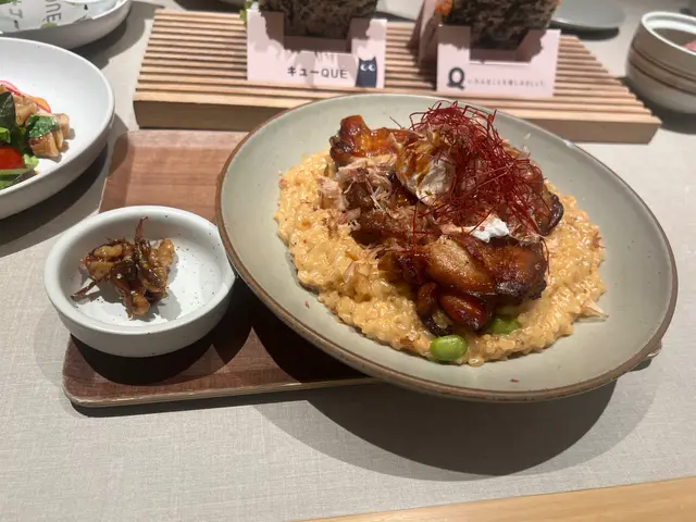 今晚同朋友去咗QUE叫左兩個lunch set share,試咗兩樣新嘢,燒豚腩泡菜意大利飯同黑松露野菌貓耳朵粉,食完都幾開心!個泡菜意大利飯橙橙地好靚,上面有幾塊燒得金黃嘅日本豚腩同烤辣椒。飯好煙韌,撈埋泡菜汁同少少辣椒忌廉,酸酸辣辣但真係好輕口,完全唔會太over。豚腩皮脆肉嫩,一啖飯一啖肉超正,食到碗底都唔悶。之後嘅貓耳朵粉就完全另一種feel,貓耳朵形狀好可愛,咬落彈彈地。醬汁係淡淡忌廉加黑松露味,仲有唔少野菌,好香口但唔會太杰,食落好舒服有層次。兩樣都唔重口味,上菜又快,坐得舒服,燈光暖笠笠,食完成個人都放鬆晒。真係幾好食,想食意粉意飯又唔想太膩,Que呢兩樣真係幾啱食。…查看更多